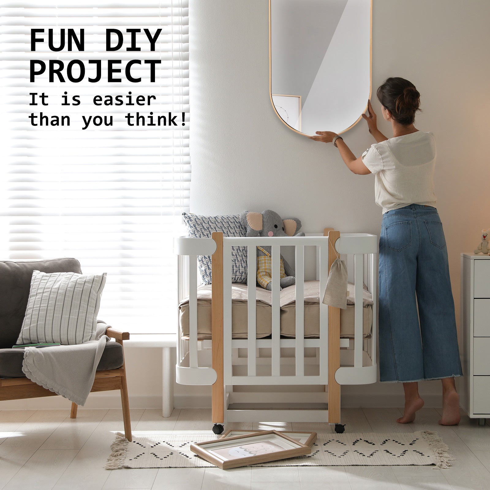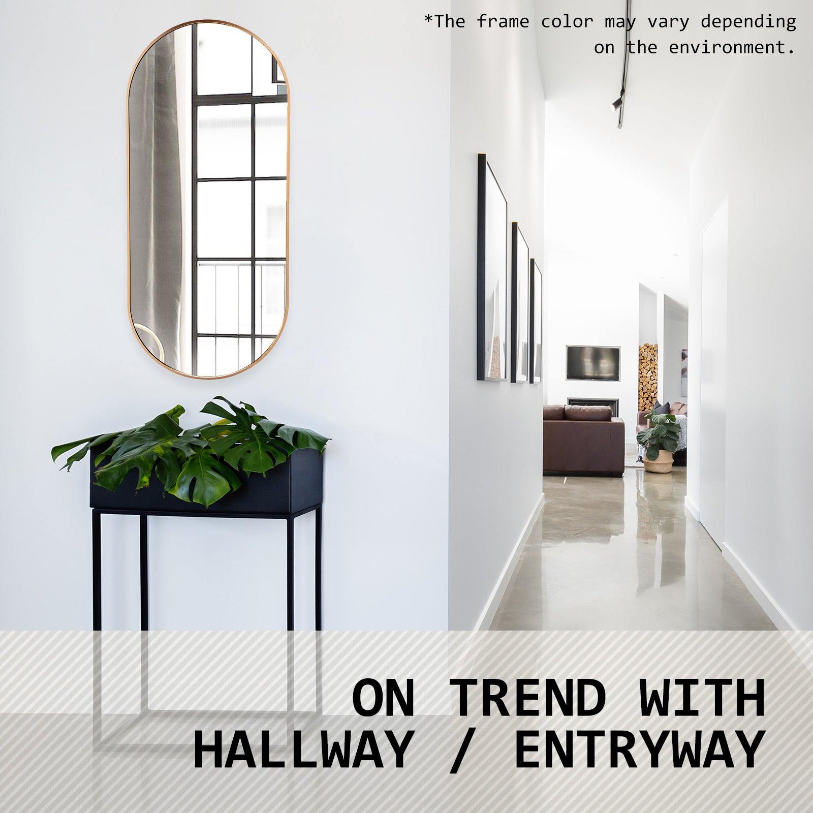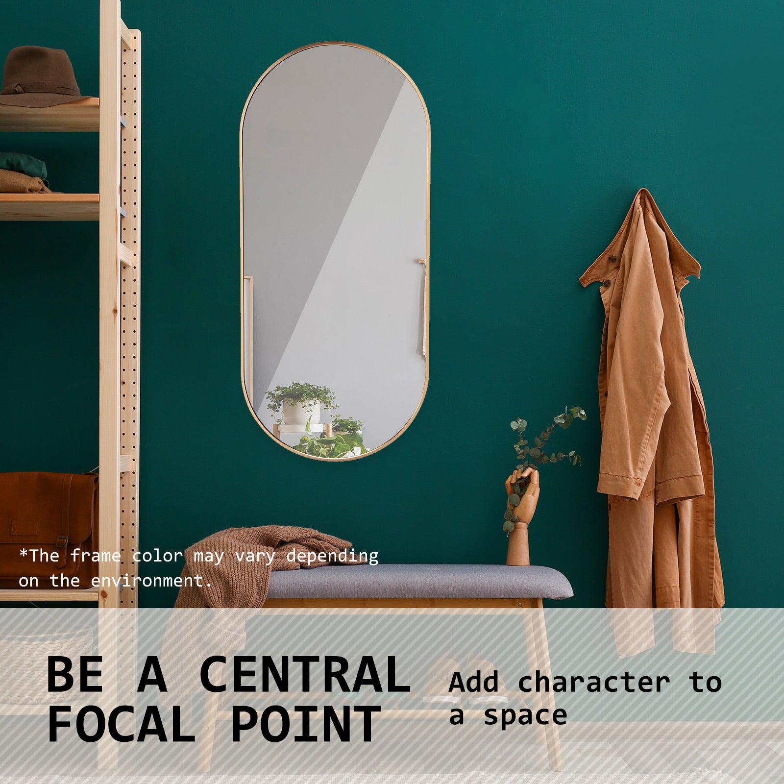 The oval mirror is stylish and neat in design comes with a 2.8cm thickness slender aluminium frame that is sure to capture the attention of all. Plus, its curved lines all rounds will become a central focal point in any room which makes spaces feel more inviting and relaxing.
