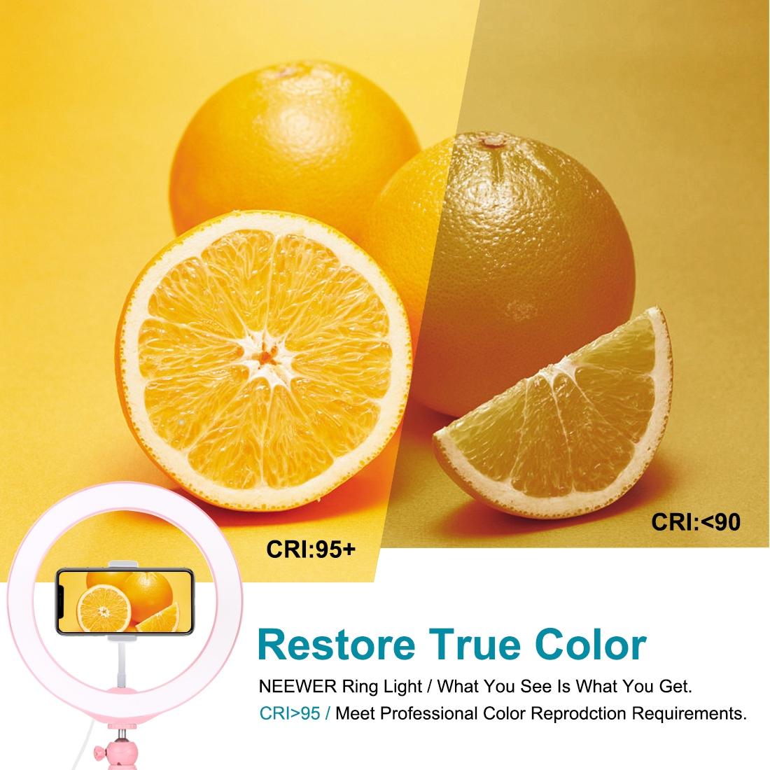 10.2 Selfie Beauty Light with Tripod Mount and Usb 3 Modes Dimmable Led Ring for Vlogging and Photography Cold Shoe Ball Head and Phone Clamp - Pink