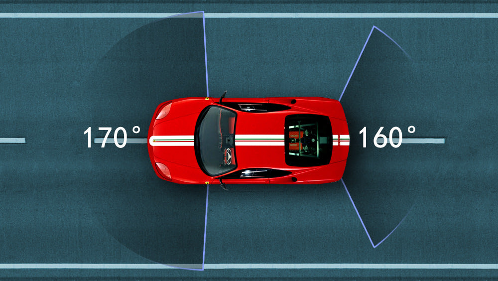 - Wide-Angle View: 170-degree front camera and 160-degree rear camera provide an expansive view, reducing blind spots.