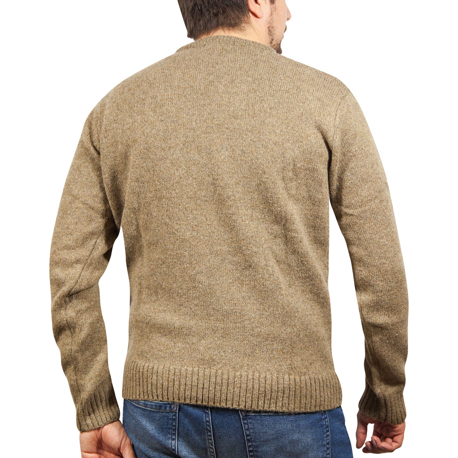 100% SHETLAND RAGG WOOL CREW Round Neck Knit JUMPER Pullover Mens Sweater Knitted - Nutmeg - 3XL