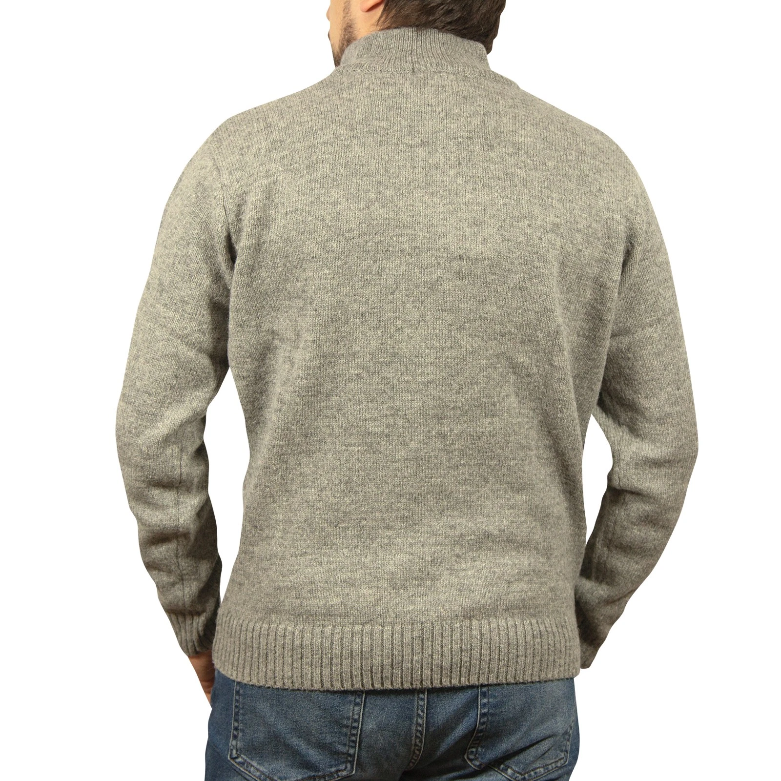 100% SHETLAND RAGG WOOL Half Zip Up Knit JUMPER Pullover Mens Sweater Knitted - Grey (21) - M