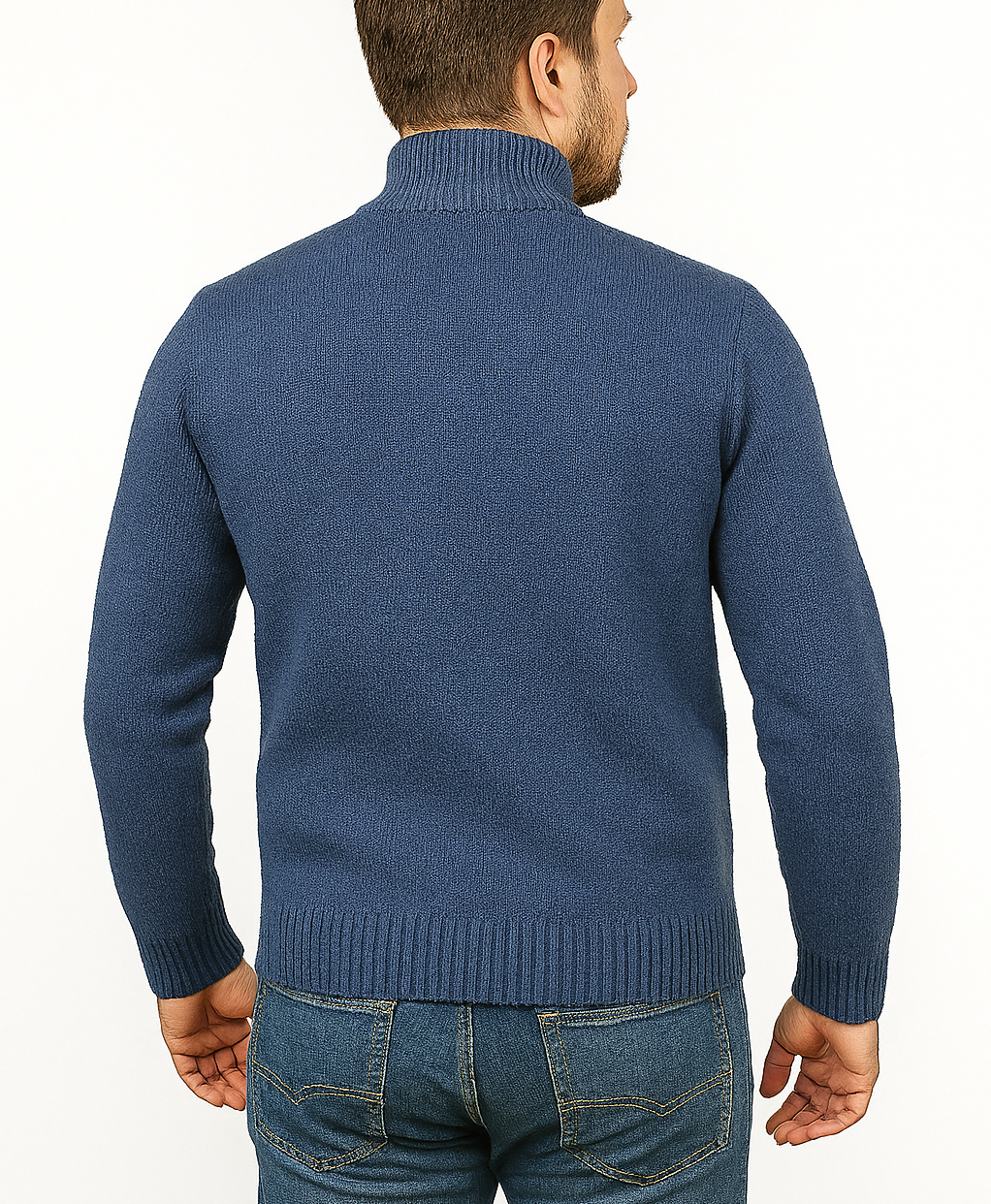 100% SHETLAND RAGG WOOL Half Zip Up Knit JUMPER Pullover Mens Sweater Knitted in Sky - L