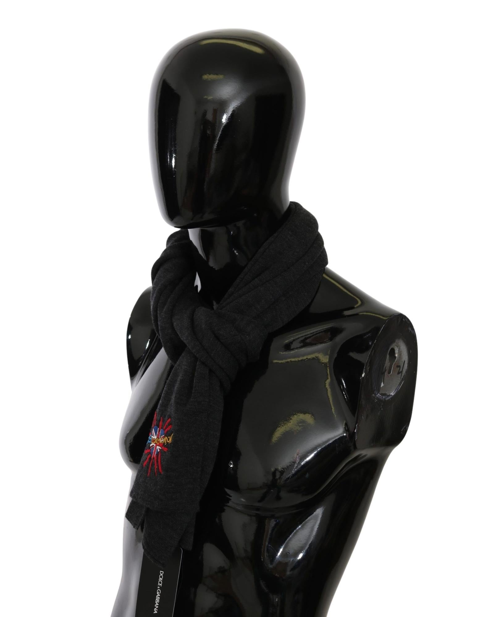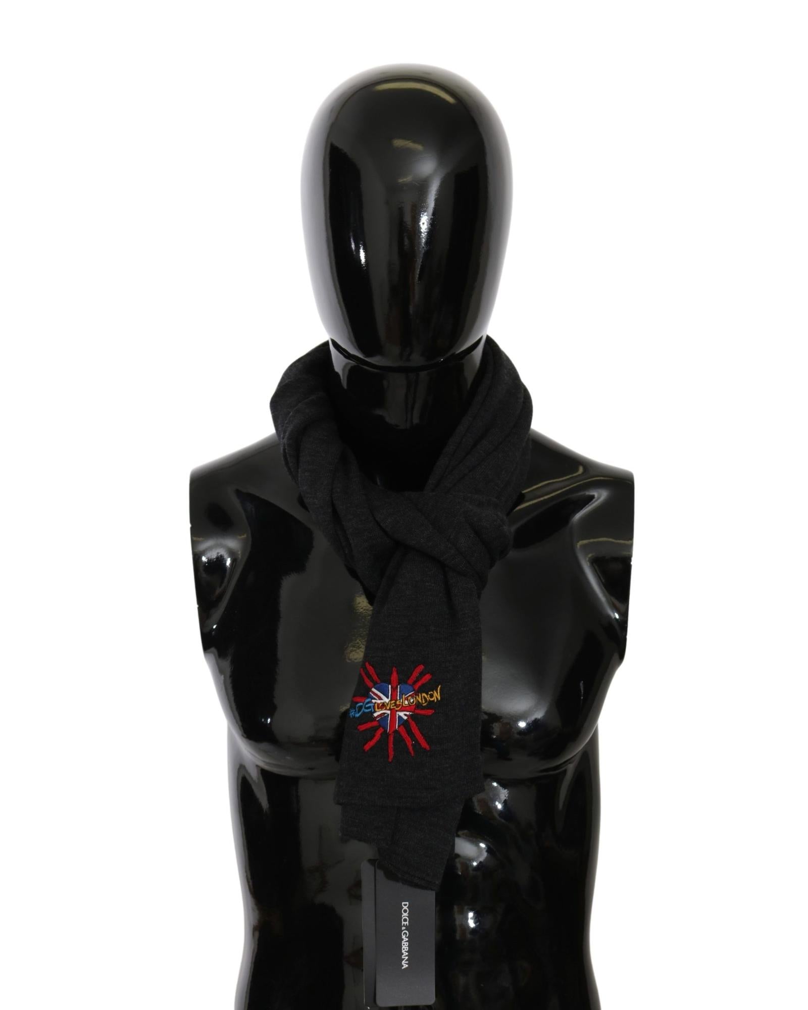 100% Wool Gray Scarf with #DGLovesLondon Embroidered Logo - Dolce & Gabbana One Size Women