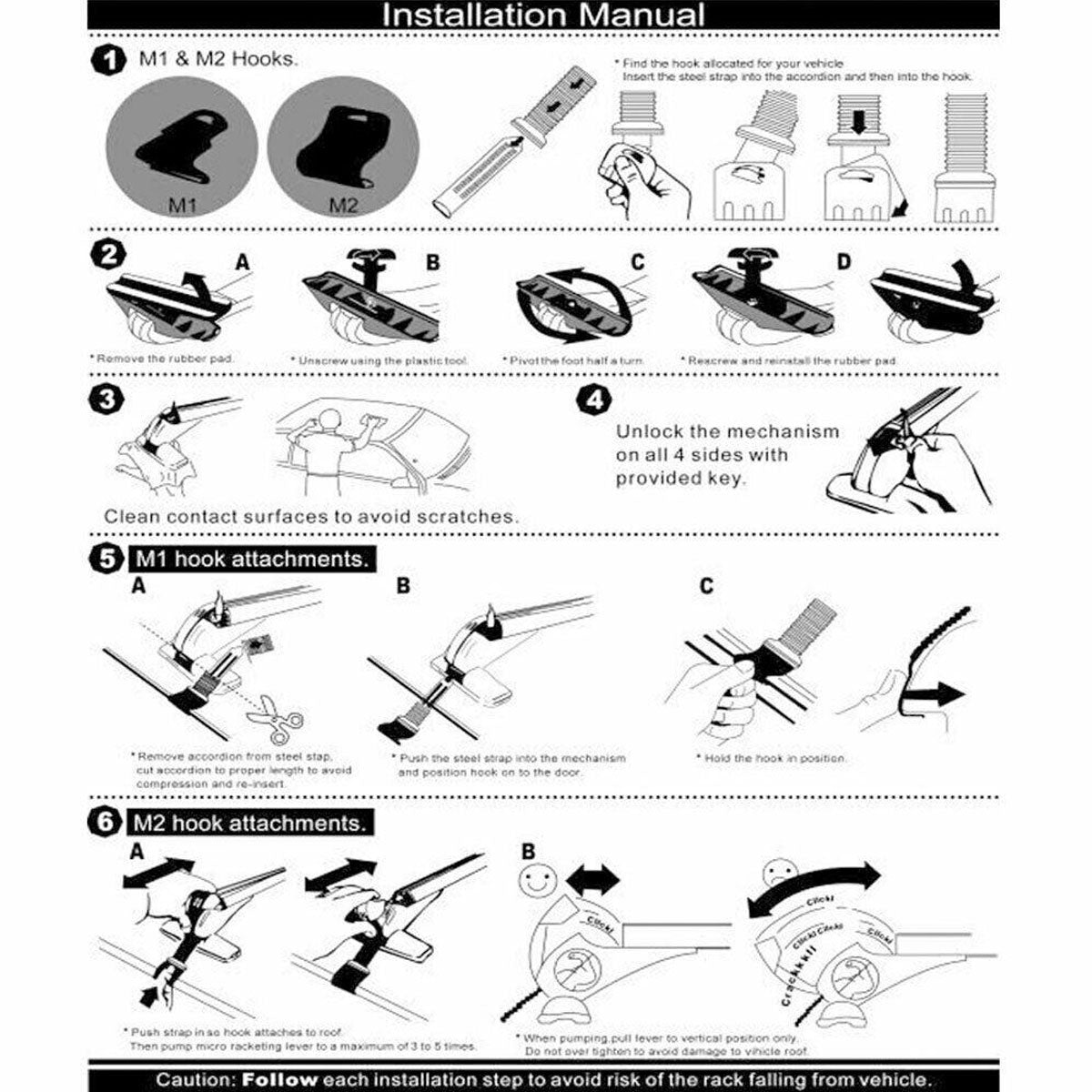 • Adjustable straps and two types of clamps/hooks to fit most vehicles