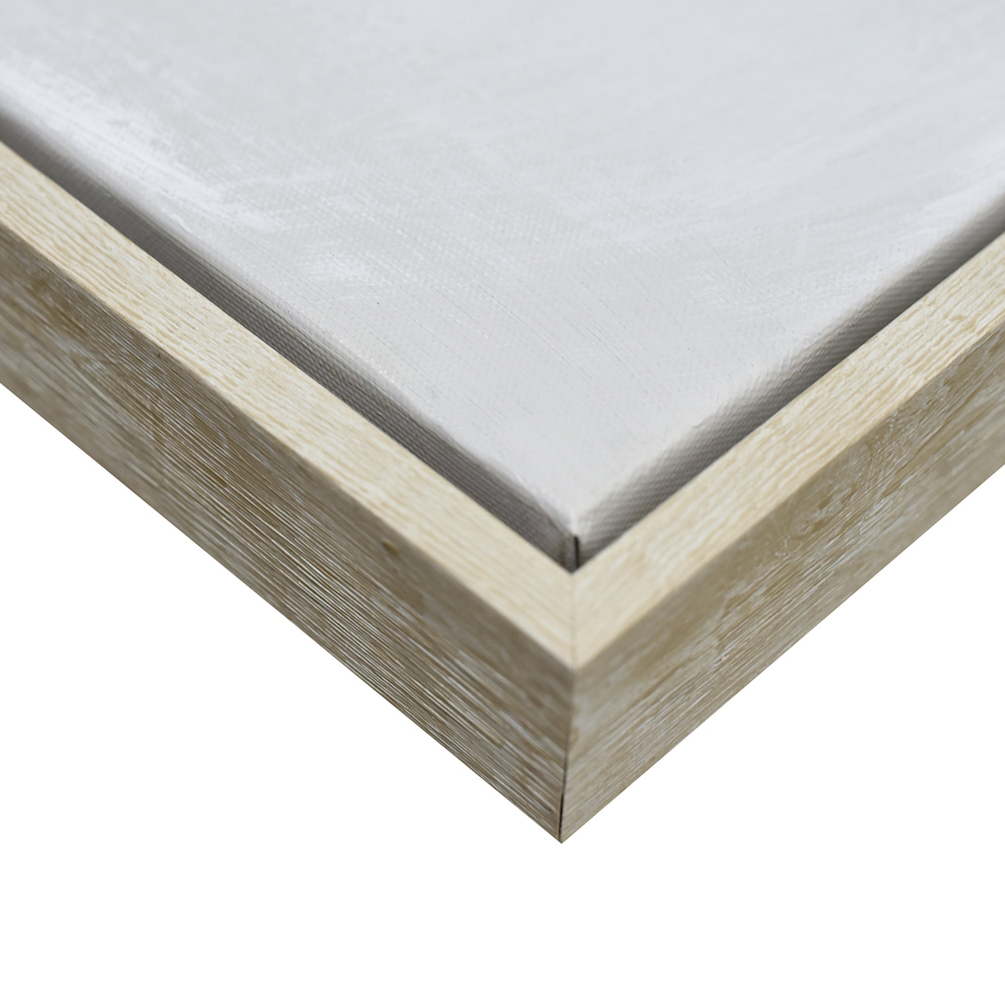 Stretched and gallery wrapped around a wooden stretcher and finished with a floating frame. There is a gap between the frame and print, which creates the floating effect and literally makes the canvas print stand out even more.