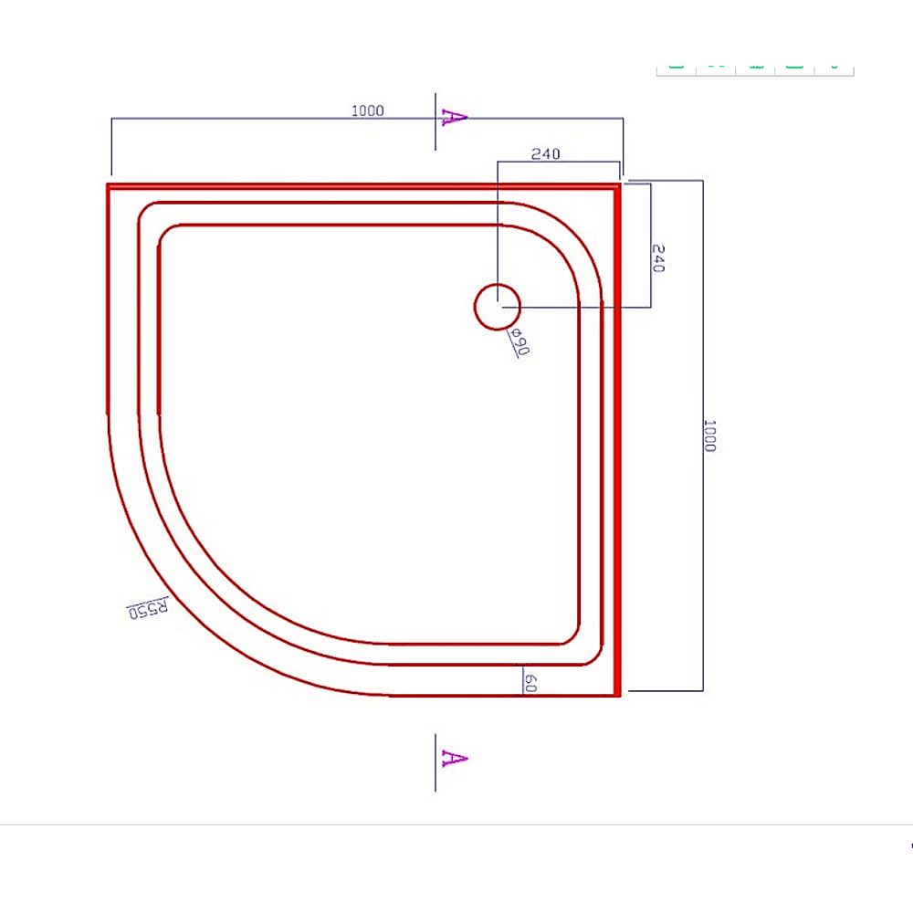 100 x 100cm Rounded Curved Shower Base in White x 1