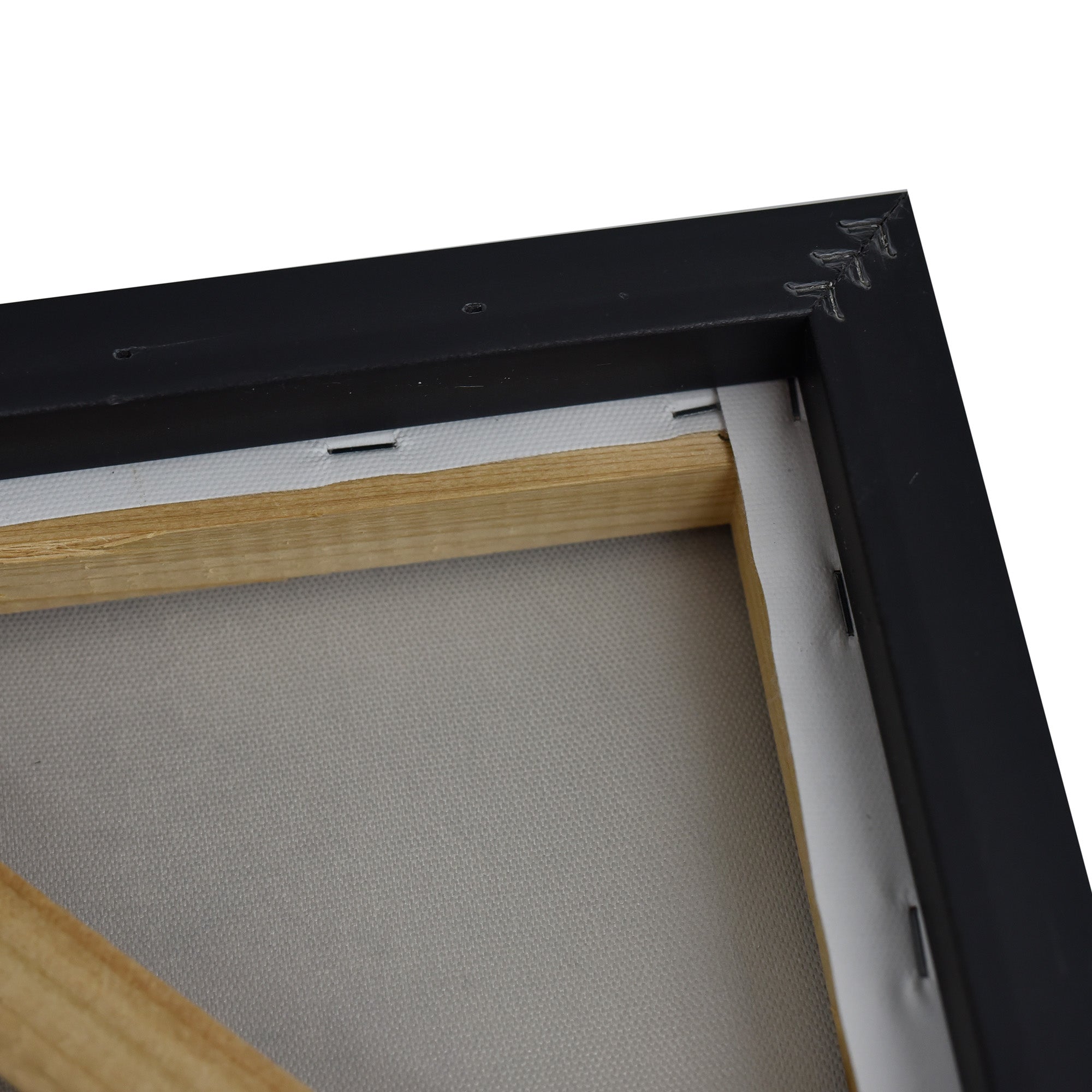 Stretched and gallery wrapped around a wooden stretcher and finished with a floating frame. There is a gap between the frame and print, which creates the floating effect and literally makes the canvas print stand out even more.
