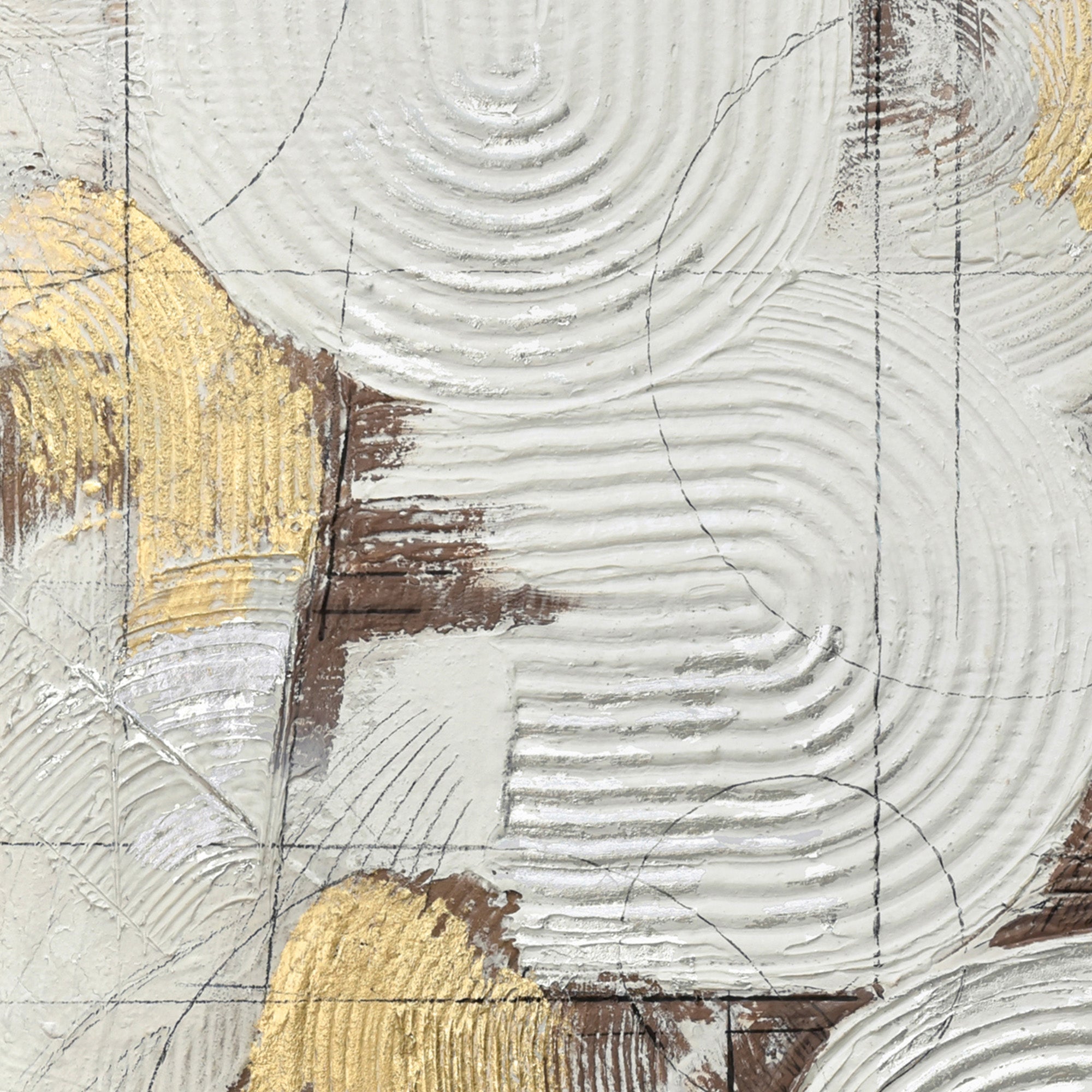 This hand-painted canvas art captures the essence of softness, blending delicate shades and textures to evoke a sense of tranquility and grace. Its dominant hues intertwine, creating a harmonious symphony that speaks to the soul. Crafted using premium acrylic, the artwork boasts a thick textured finish that brings each brushstroke to life. Set within a luxurious gold polystyrene frame, made of fir wood, this piece embodies elegance and grace, making it a timeless addition to any interior.