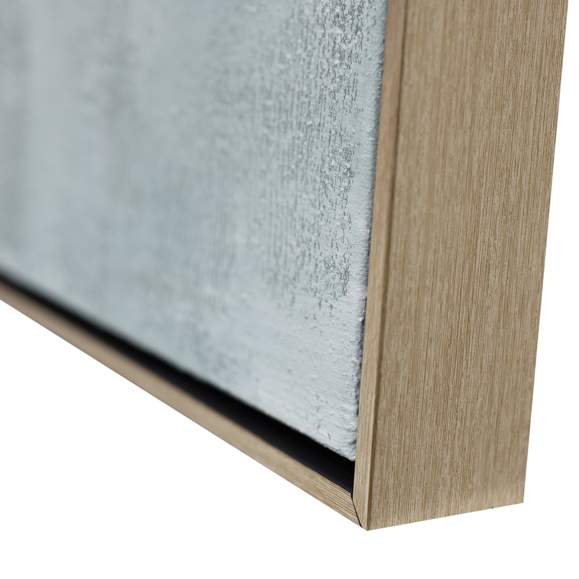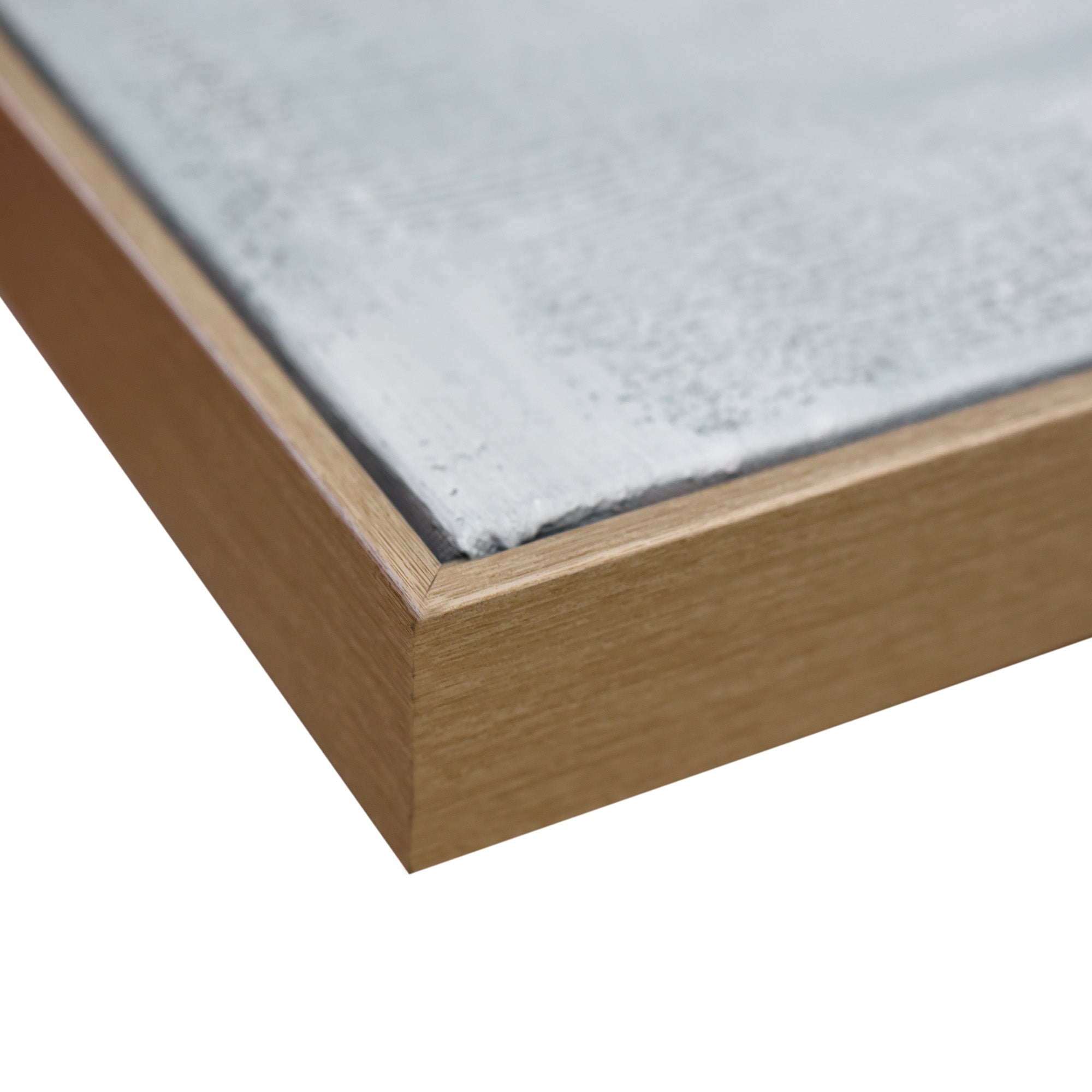 Stretched and gallery wrapped around a wooden stretcher and finished with a floating frame. There is a gap between the frame and print, which creates the floating effect and literally makes the canvas print stand out even more.