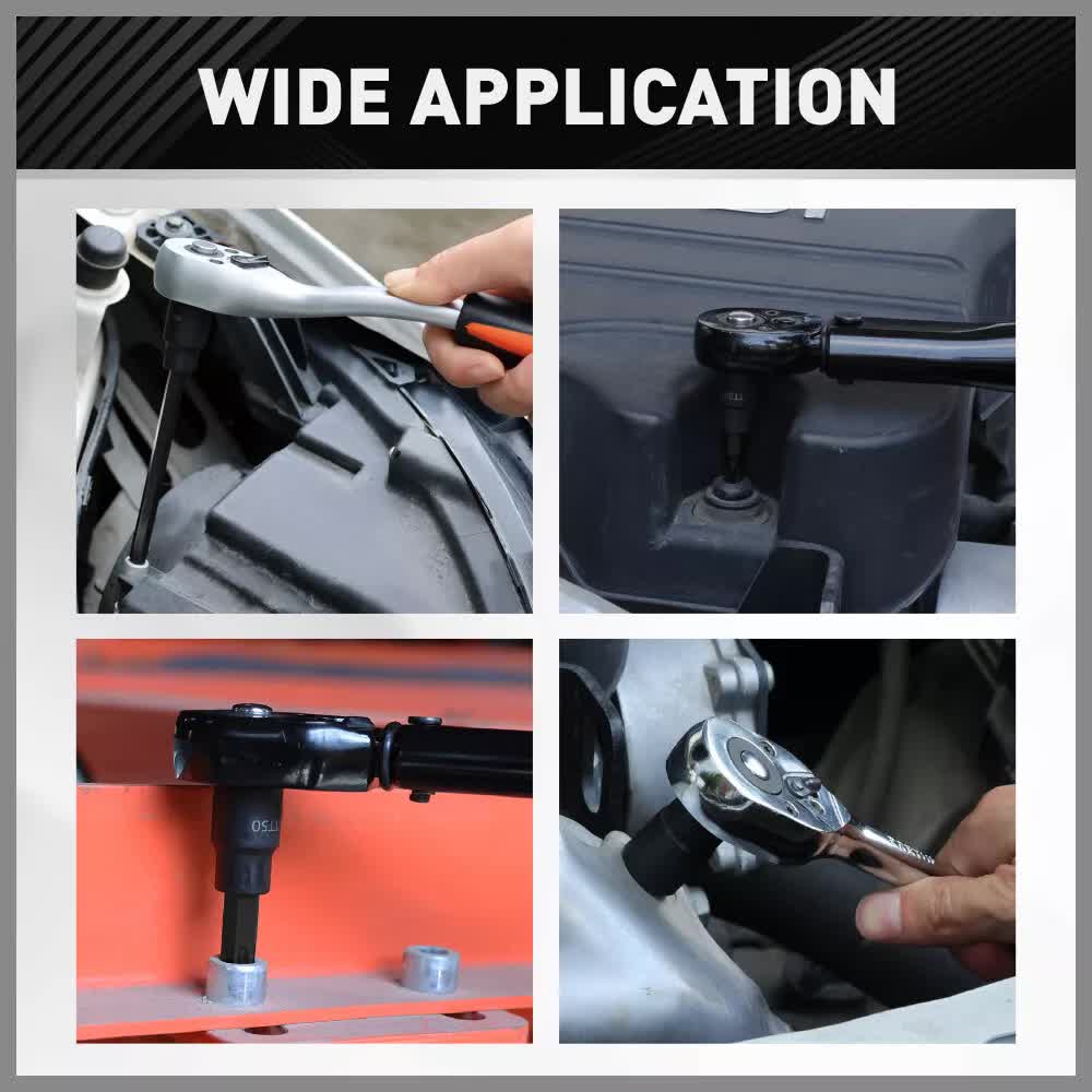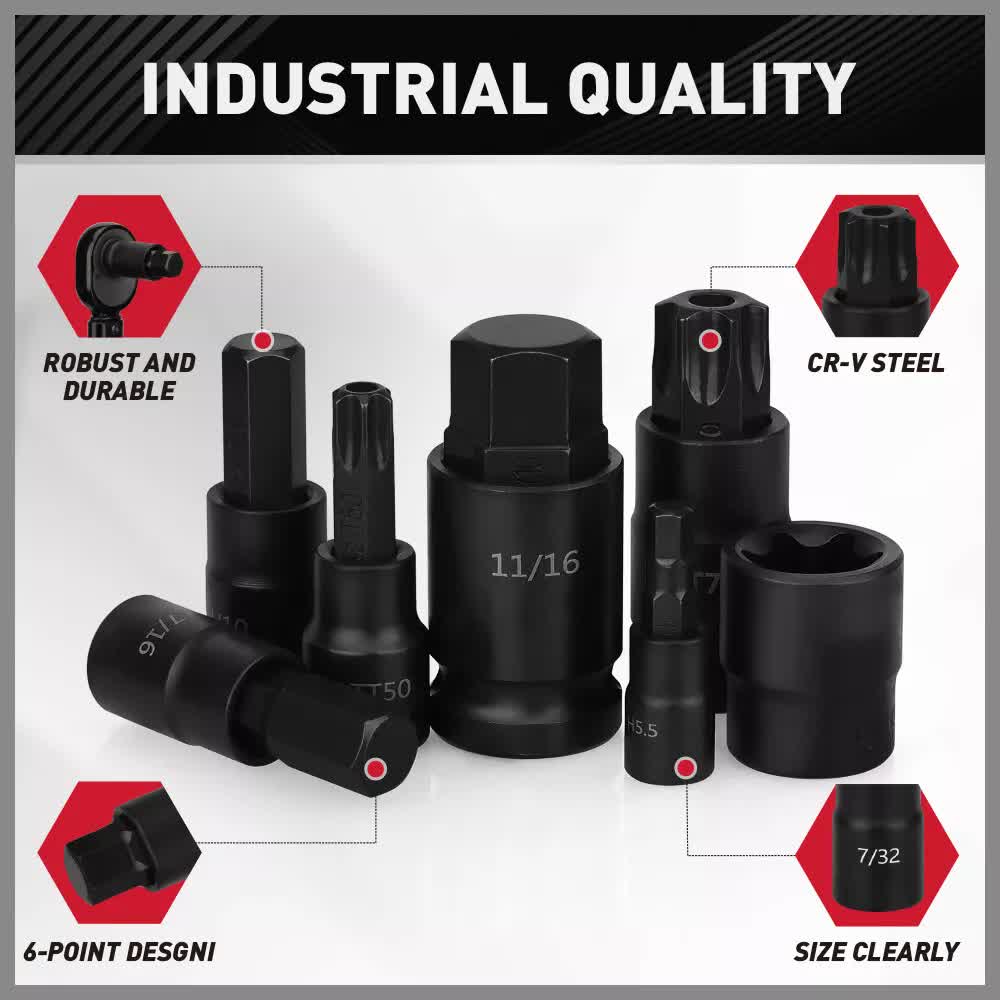 【WIDE APPLICATION】Ideal to use with manual torque tools, our bit socket set includes all the essential sizes to work on bikes, automobiles, appliances, lawn equipment, machinery, and any other jobs requiring torx and hex sockets.
