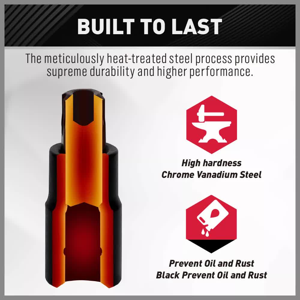 【PRODUCT TECHINOLOGY】Each allen and torx bit has a unique chamfering design, protect the bits and fasteners from damaged edges. Both bit and socket size information are engraved on the surface of the product for easy and quick identification and use.