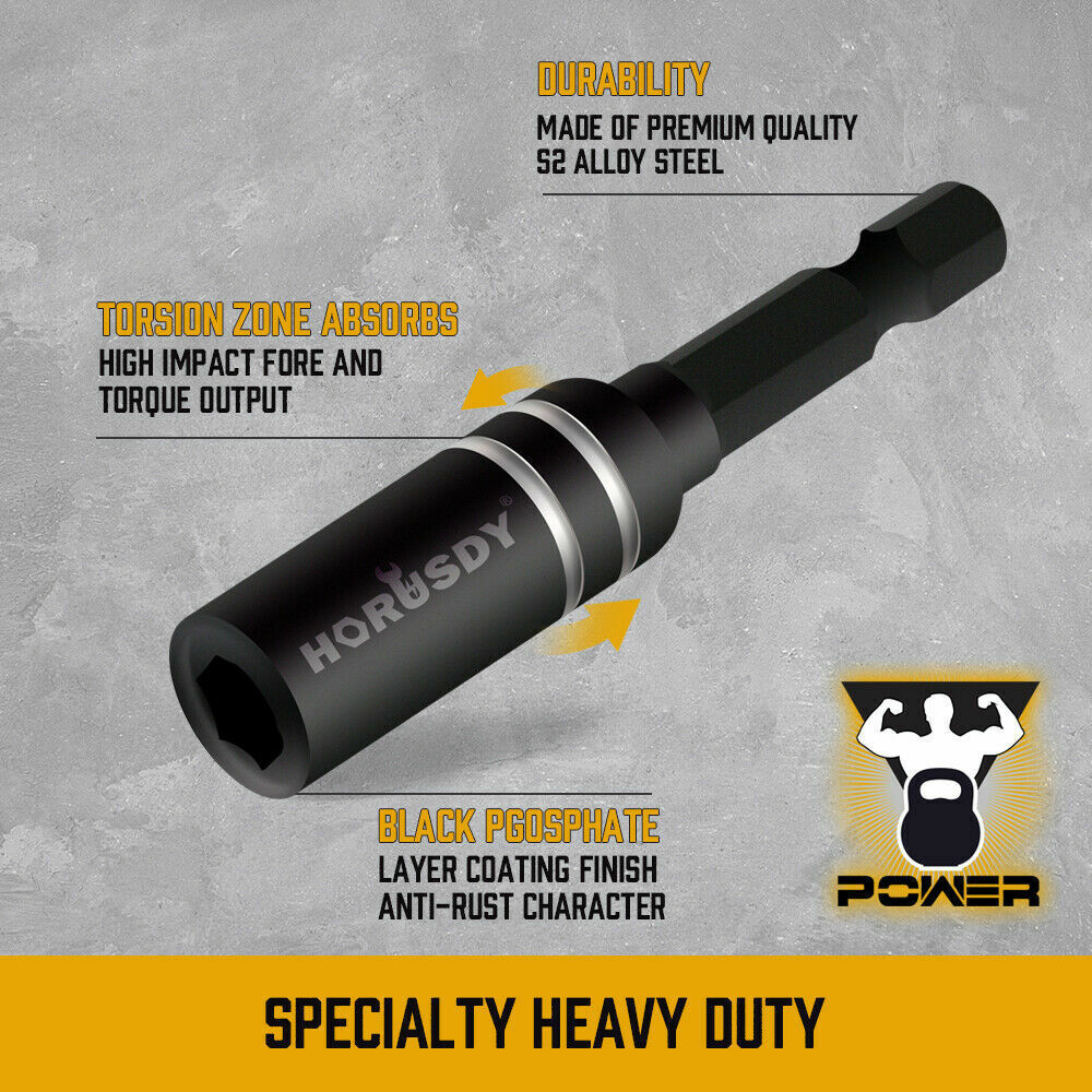 • The magnetic extension socket drill bit holder is made of chrome vanadium steel, high hardness, abrasion resistance.