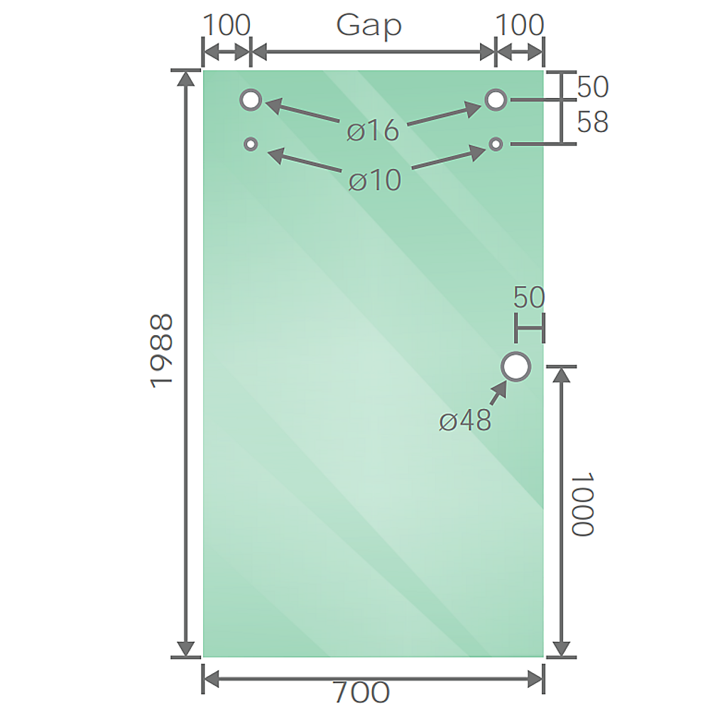 - Slimline 2mm rear wall reduces silicone gap between wall and glass panel