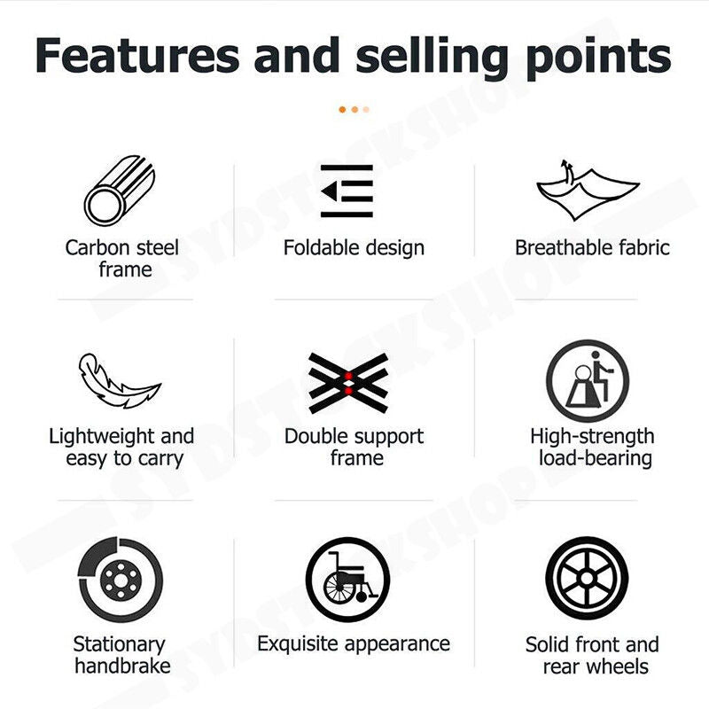16 Lightweight Foldable Wheelchair Flat-Free Tires Handbrakes