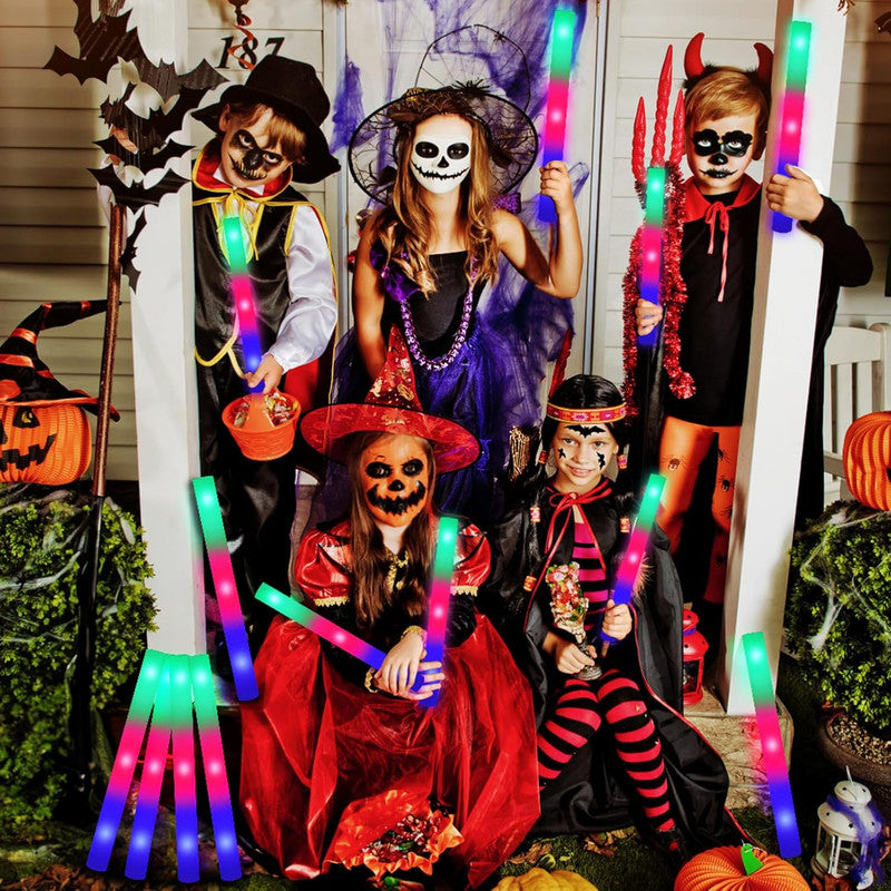 Glow Sticks: Our LED Foam Glow Sticks are versatile and suitable for all types of parties, whether indoors or outdoors, especially at night. They make excellent party favors for birthdays, house parties, concerts, weddings, and even community Halloween carnivals.