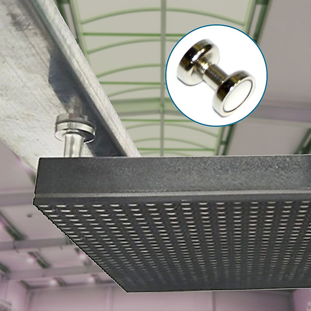 Crafted from the rare-earth element neodymium, these magnets from Randy Travis Machinery are sunk into a steel pot, with a centred borehole and countersink. Screw them into the ceiling or wall, and you can even use them to attach objects to these surfaces, using a countersunk screw.