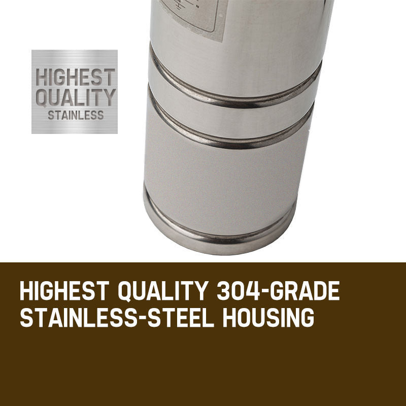 The Protege BW33 1hp bore water pump gives you a class-leading flow rate, producing an awesome 83L/min at 26 metres' depth. And if you need to go really deep, its 10 impellers will still be producing 17L/min at a dizzying depth of 88 metres. What's more, featuring a 304-grade stainless steel housing as well as brass inlets and outlets, it's truly built to last.