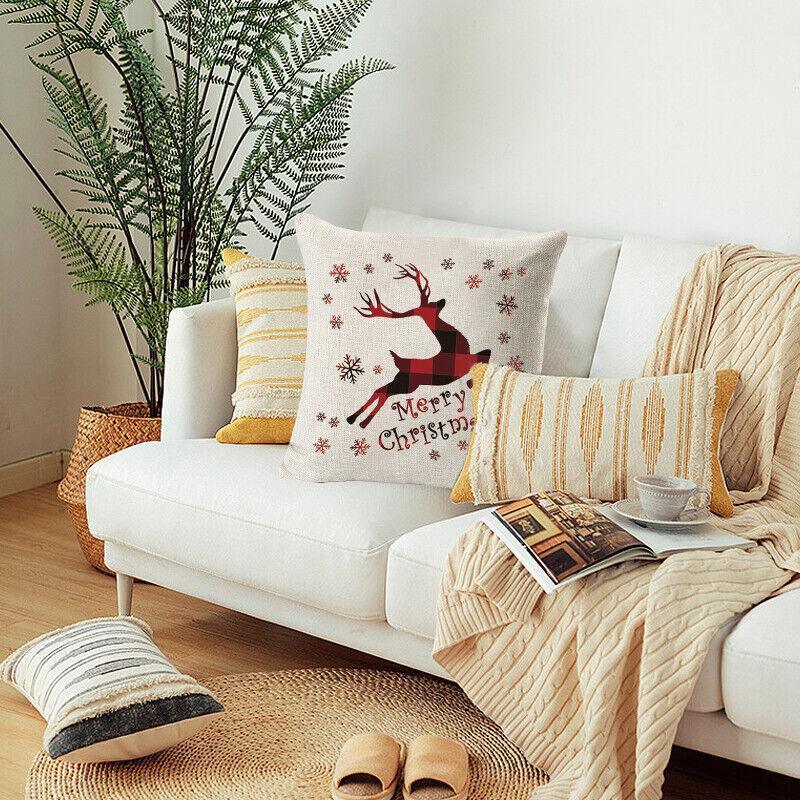 1Pc Christmas Square Cushion Cover Throw Waist Pillow Case Sofa Home Decor - Deer