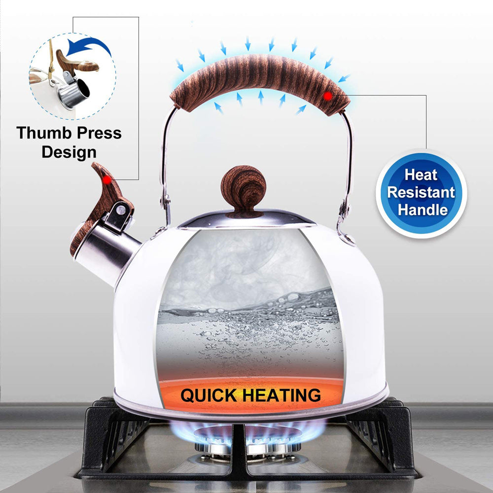 2.5 Liter Tea Whistling Kettle Stainless Steel Modern Whistling Tea Pot for Stovetop White