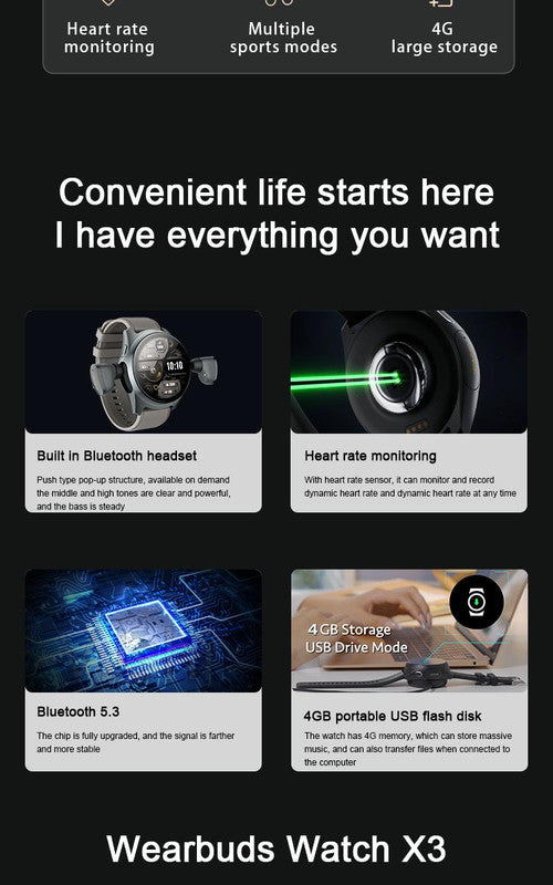 - 1 x 2-in-1 Smartwatch with built-in Earbuds