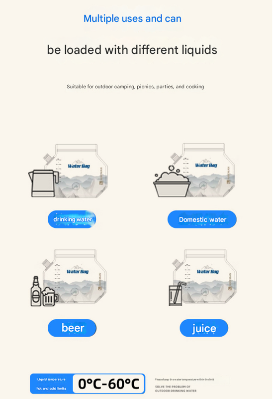 This water bag is not designed for hot liquids. Please ensure liquid temperature does not exceed 60 Celsius.