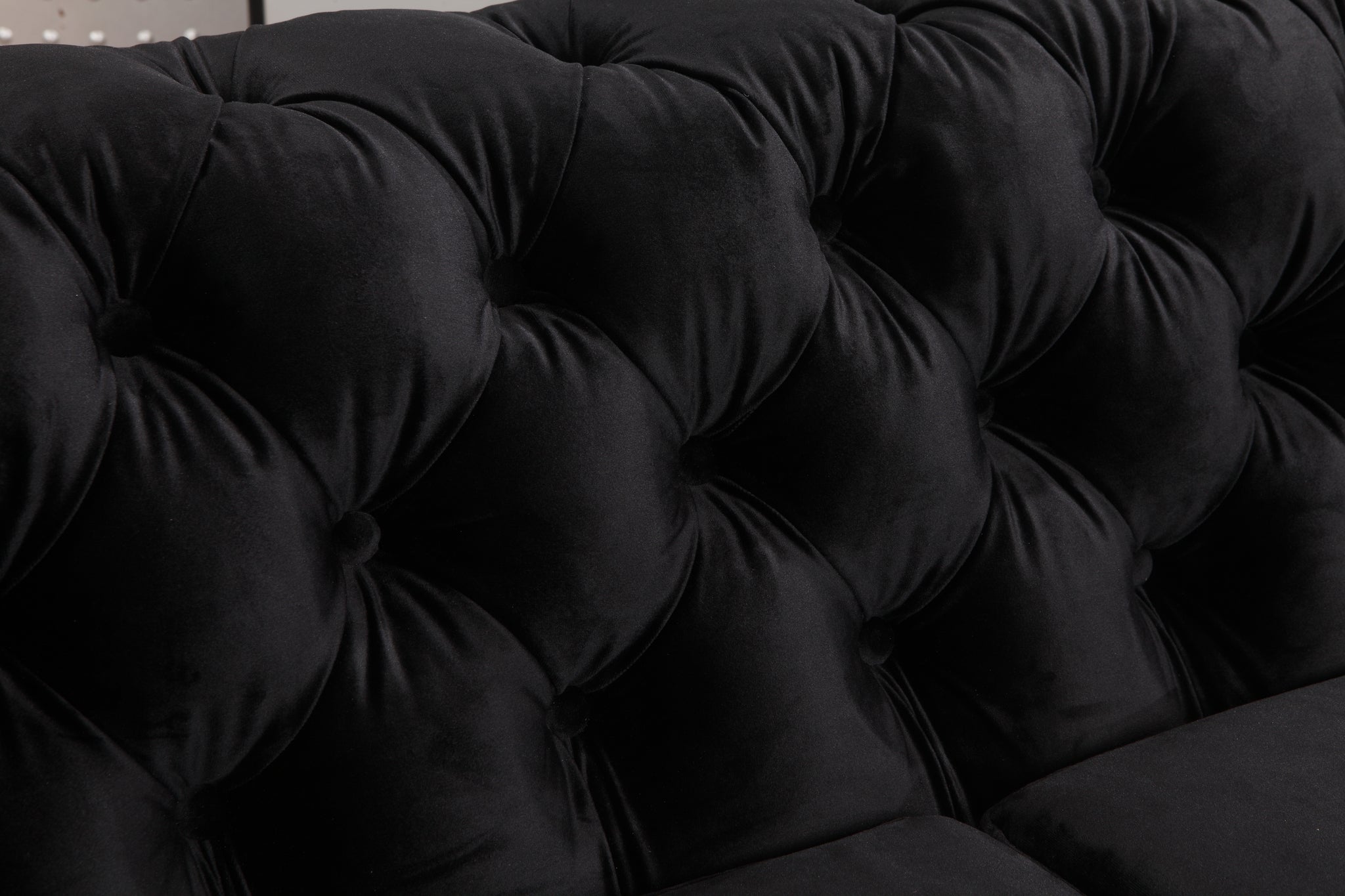 2 Seater Sofa Classic Button Tufted Lounge in Black Velvet Fabric with Metal Legs