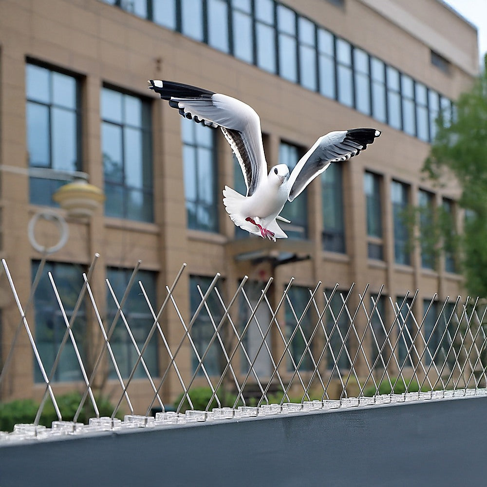These slim, flexible rods sit in a base at an angle. They're not sharp, but they keep the birds' feet from gaining a foothold on your building because the spikes are too flexible for a bird to achieve a comfortably flat resting place. They're easy to clean and maintain. Simply pull out any debris, such as leaves, that accumulates as the weather changes. And, they're easy to install, making them cost-effective since you'll never need to call a professional installer. They're crafted from durable stainless steel on a tough polypropylene base, so they'll last for years to come. Don't wait for the birds to arrive this spring. Get prepared now with a set of these spikes!