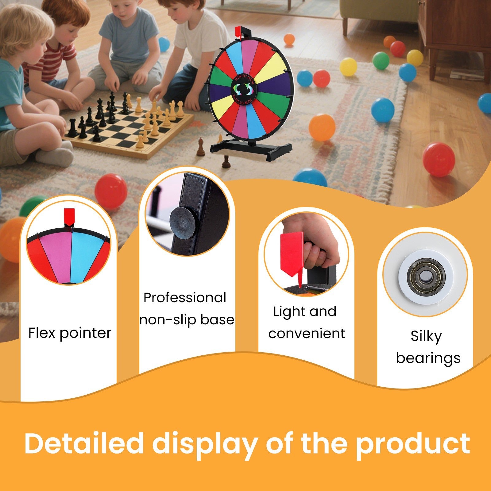 24" Prize Wheel 14 Slots Spinning with Stand Dry Erase Fortune Game Carnival