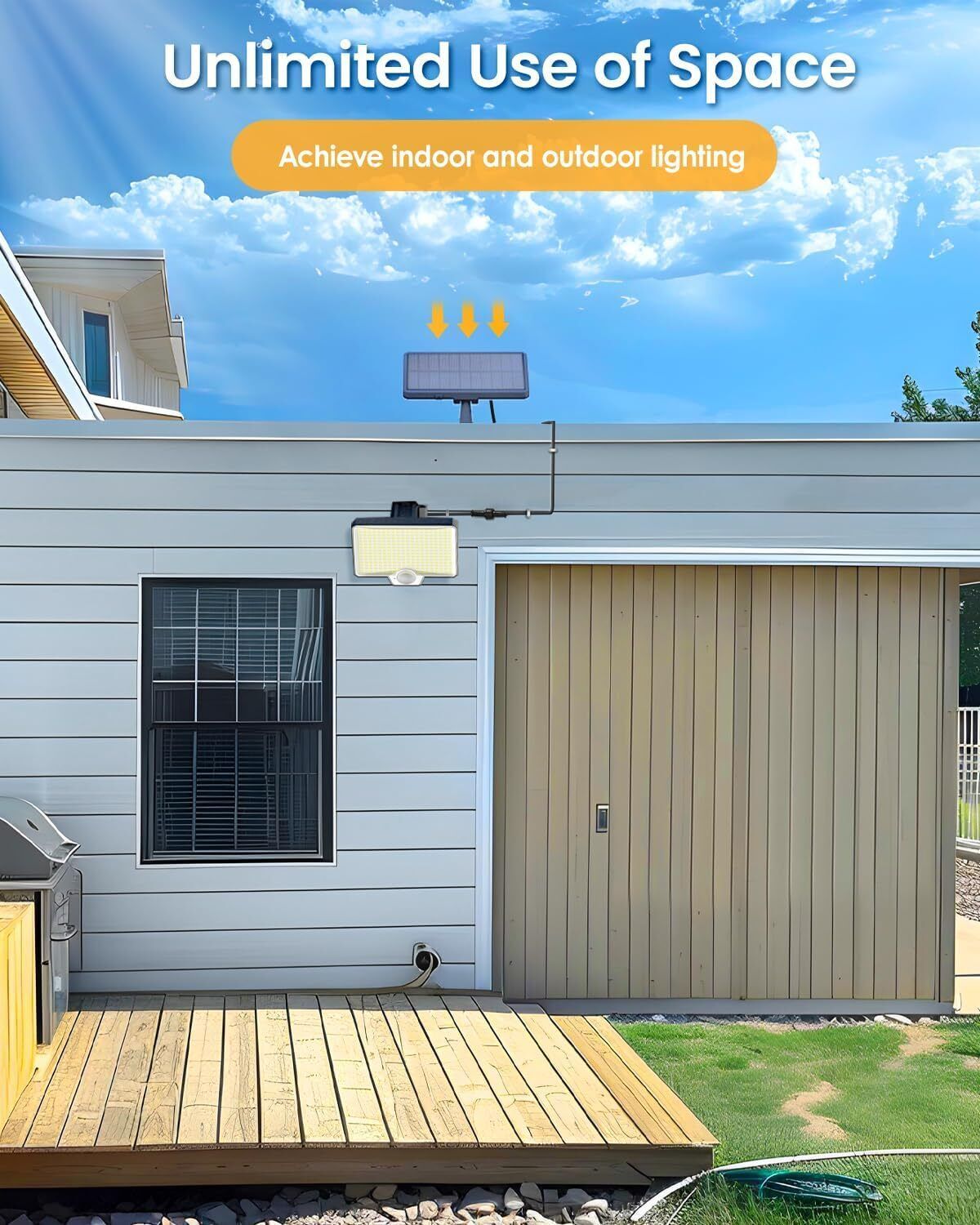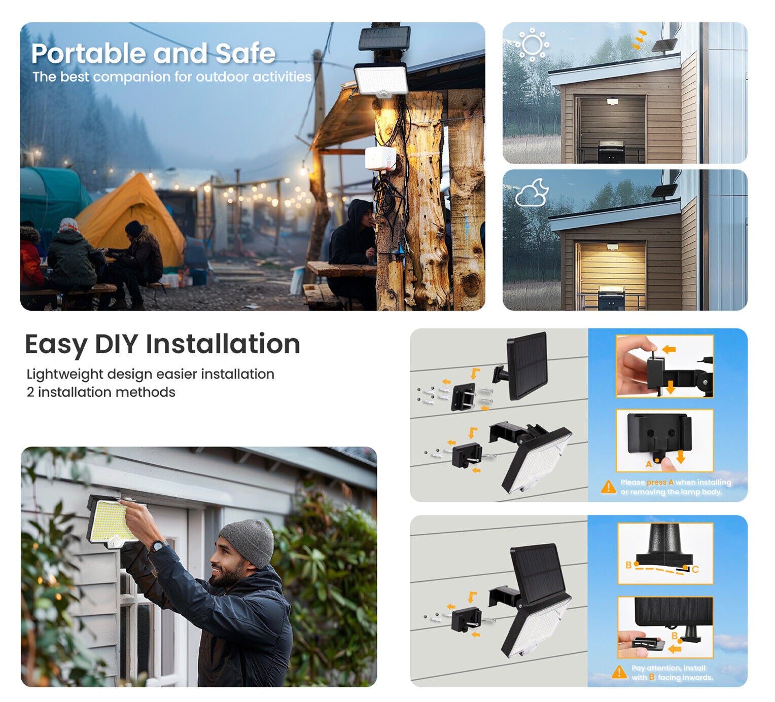 • Enhanced Brightness: Featuring 294 powerful LEDs, this solar-powered flood lamp offers superior illumination, making it perfect for lighting up garages, backyards, porches, and patios, ensuring your outdoor areas are safely lit at night.