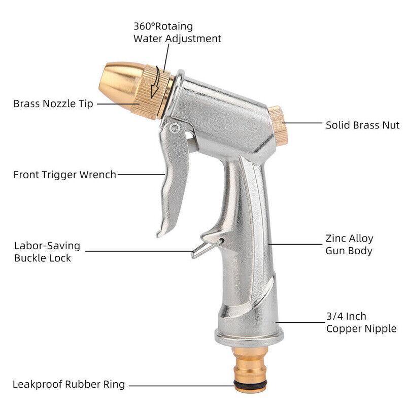 2Pcs High Pressure Water Spray Handle Nozzle Brass Garden Hose Pipe Lawn Car Wash