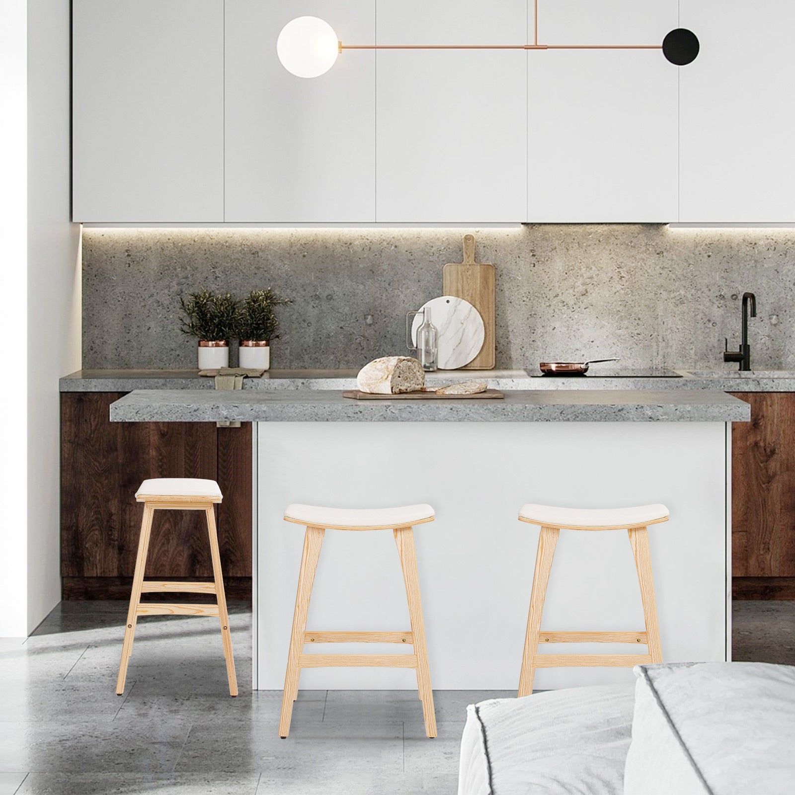 2X Wooden Bar Stool Padded Fabric Dining Chair KANSO 65cm BEIGE