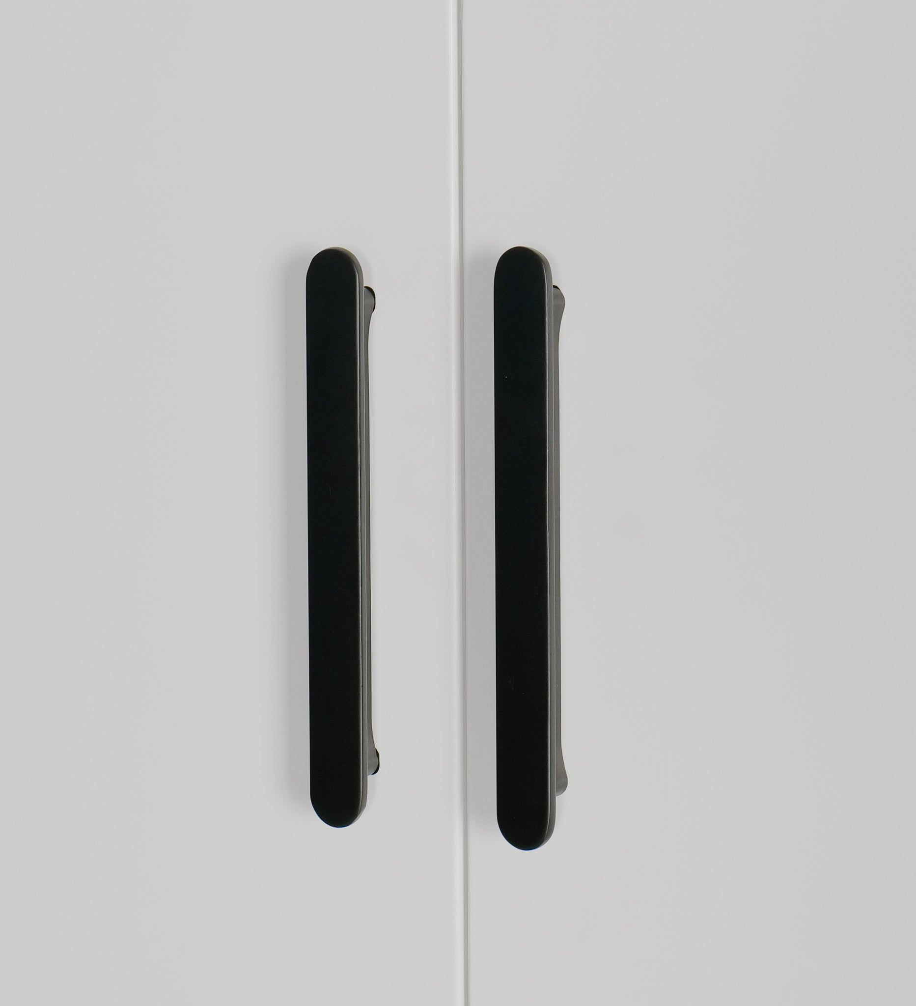 3 Door White Gloss Wardrobe – Black Handles, Hanging Rail & Shelves