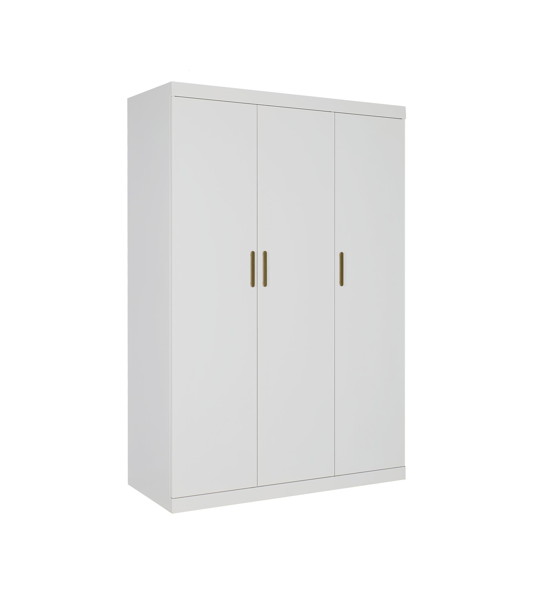 3 Door White Gloss Wardrobe – Gold Handles, Hanging Rail & Shelves