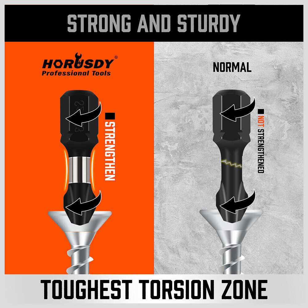 【Special Design】Torsion design effectively reduces bits pressure & breakage; easy to fix bits and pull screws out with the strong magnetic nuts, bits holder and socket adaptor