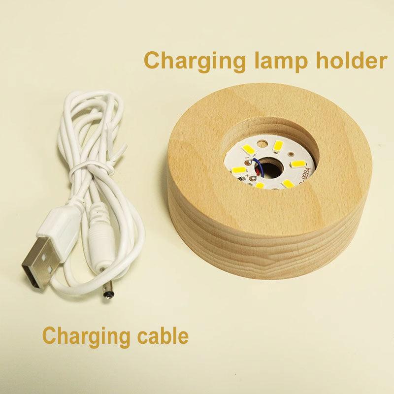Wooden LED base with USB cable, compatible with power banks, laptops, or chargers