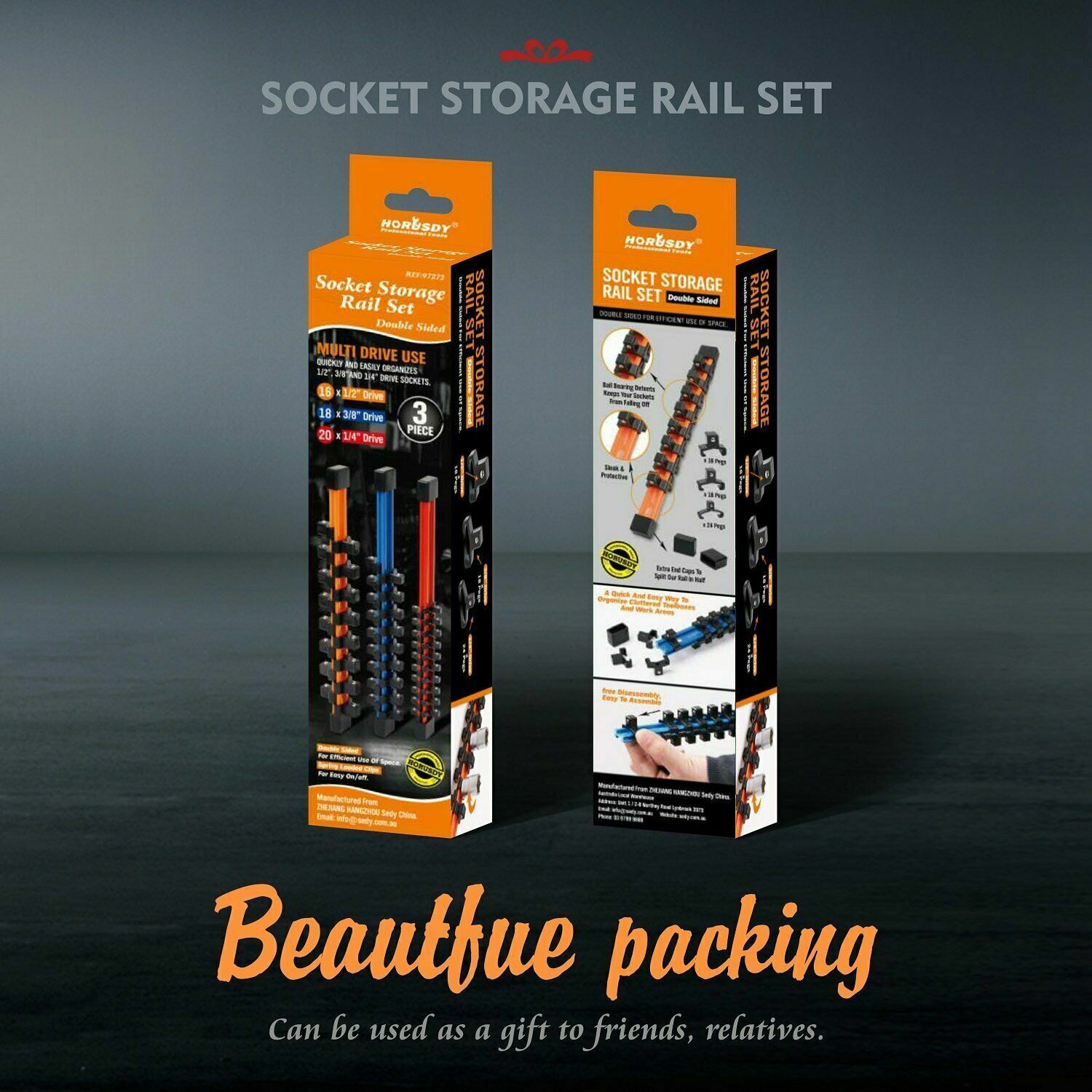 3Pc Double-Side Sockets Holder Tool Organizer Rails WorkShop Rack 1/4" 3/8" 1/2”