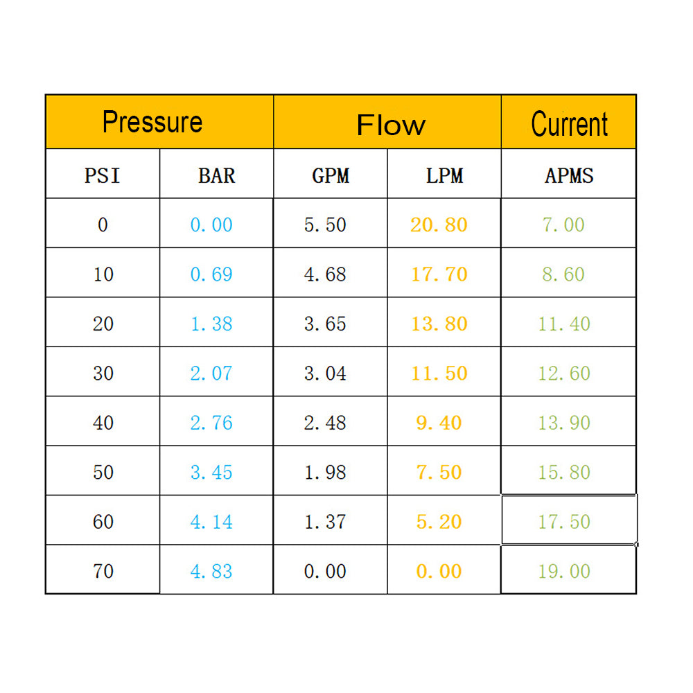 Flow Rate: 6.6 GPM/ 25.0 LPM
