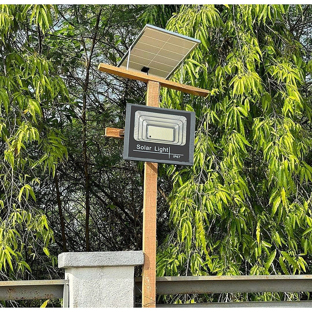 Light up your outdoors with this powerful 60W LED Solar Flood Light with Motion Sensor. Featuring a large solar panel, long-lasting battery and super-bright reflector LEDs, it delivers reliable lighting all night with zero running costs. With remote control, adjustable modes, and IP67 waterproof durability, it's the perfect solution for gardens, driveways, patios, and business security.