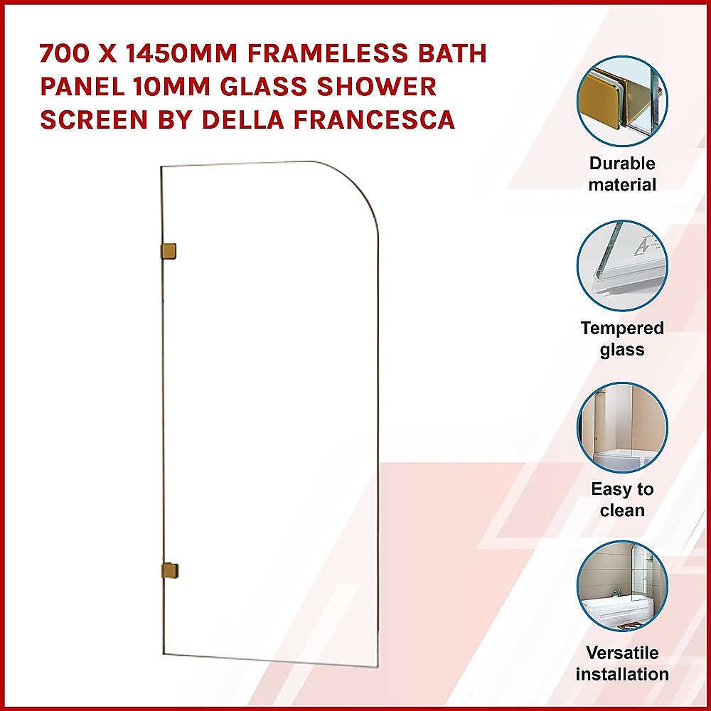 700 x 1450mm Frameless Bath Panel 10mm Glass Shower Screen By Della Francesca