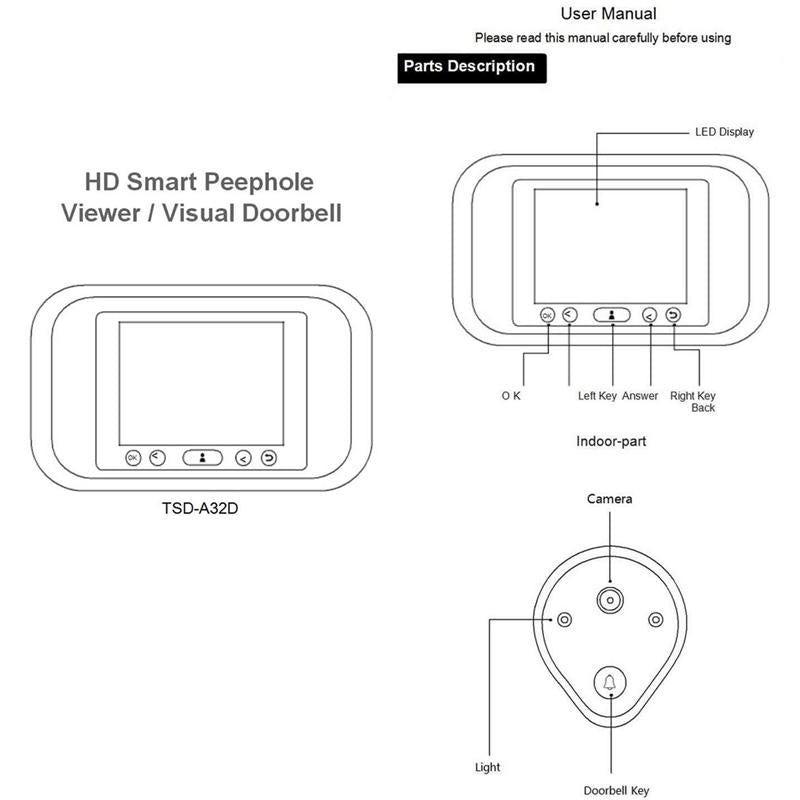 • 1 x 3.2 Inch Led Display 720P Hd Smart Peephole Viewer / Visual Doorbell Support Tf Card 32Gb Max