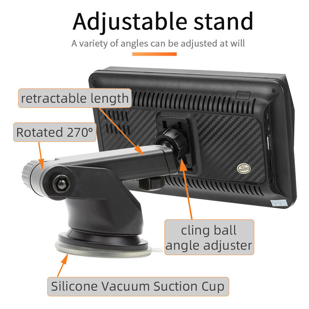 The portable multifunctional stand on the back of the MP5 Player can be adjusted at will to watch videos from different angles. There is a spherical angle adjuster, which can be rotated 270degree and can extend the length. The bottom layer is a silicone vacuum suction cup, which is more stable and safe while driving.