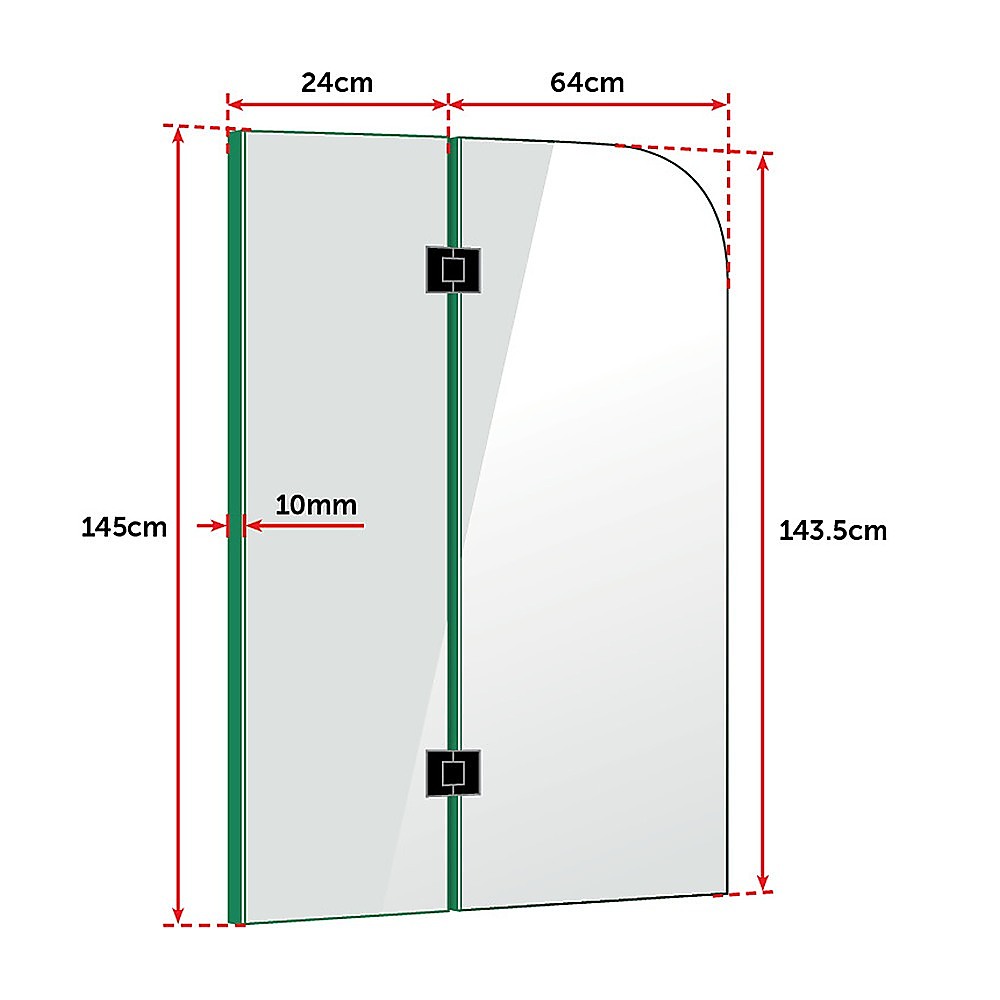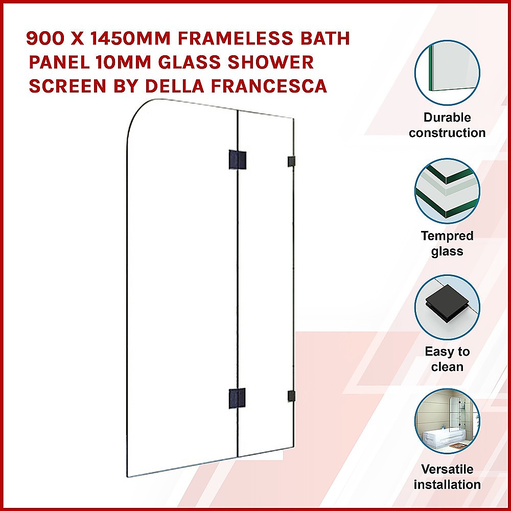 900 x 1450mm Frameless Bath Panel 10mm Glass Shower Screen By Della Francesca