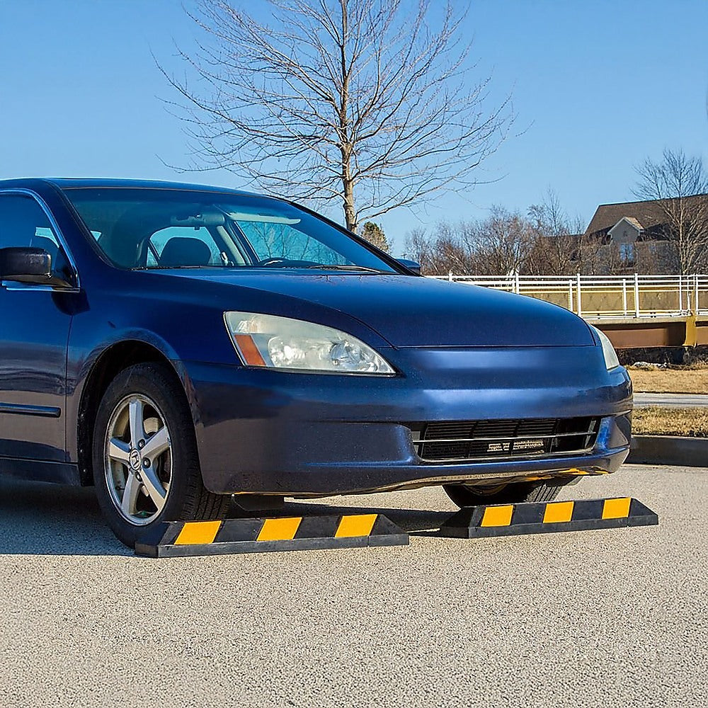 Protect your customers' cars from bumps and scrapes with these high-visibility rubber parking curbs by Randy Travis Machinery. Its high-contrast black-and-yellow colour makes it easy for drivers to seeeven in the evening. Not only will it protect your customers' vehicles, but it will keep your landscaping, sidewalks, and walls safe from distracted drivers' errors.