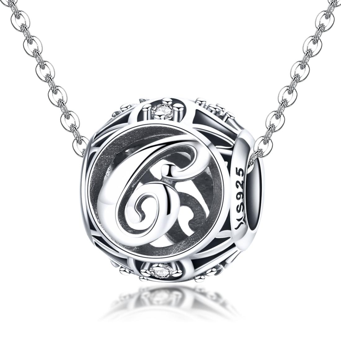 • 1 x 925 Sterling Silver 26 English Letter Beads For Diy Bracelets Necklaces Style - C