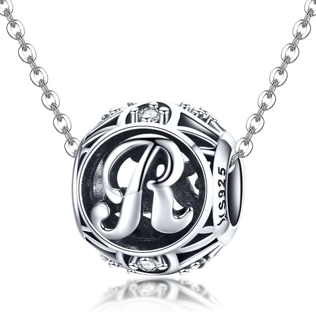 • 1 x 925 Sterling Silver 26 English Letter Beads For Diy Bracelets Necklaces Style - R