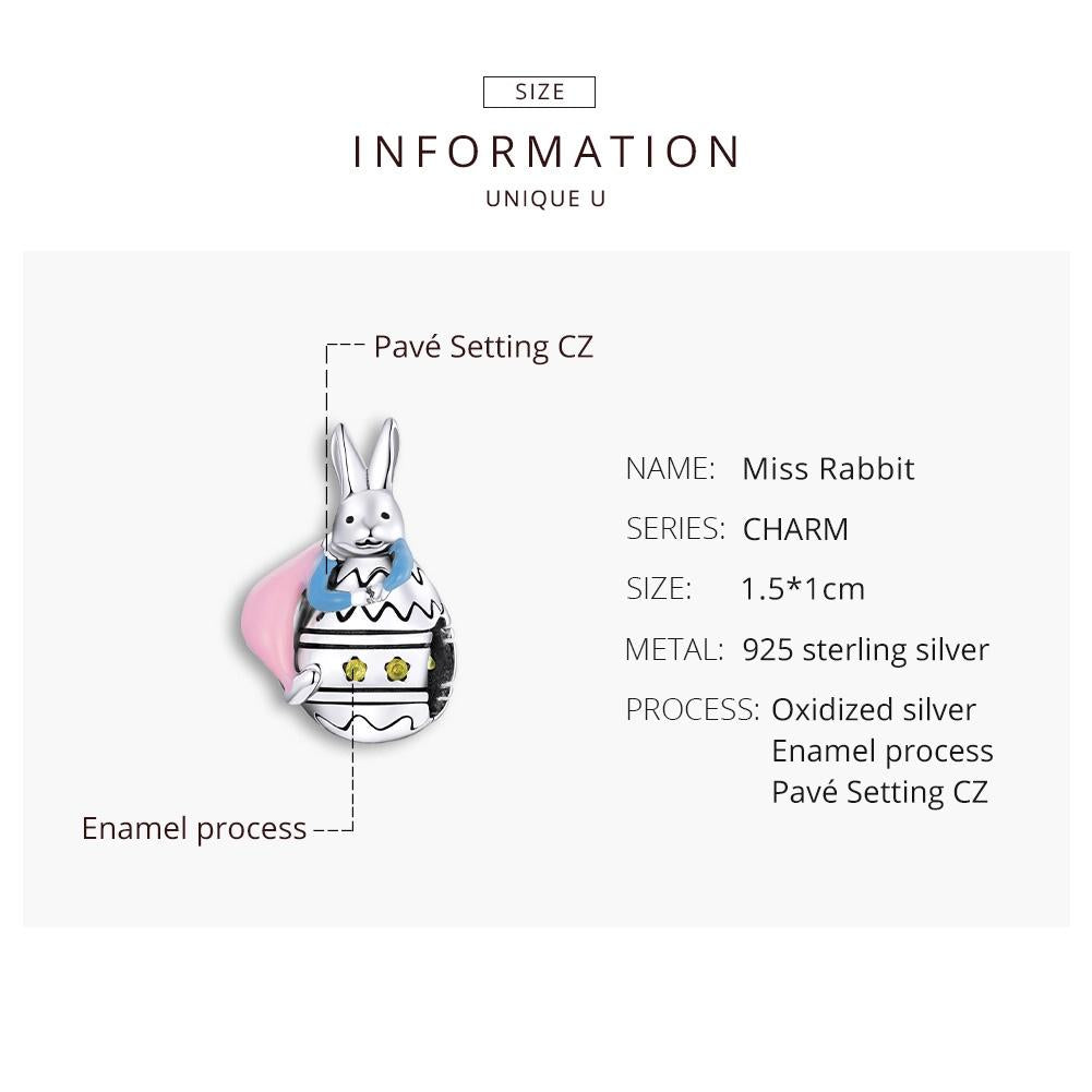 925 Sterling Silver Bunny Bead Bracelet / Necklace Accessory
