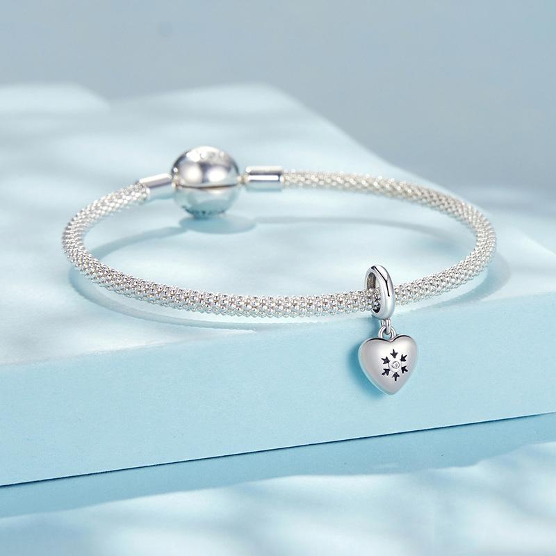 925 Sterling Silver Oxidized Snowflake Heart Diy Beads