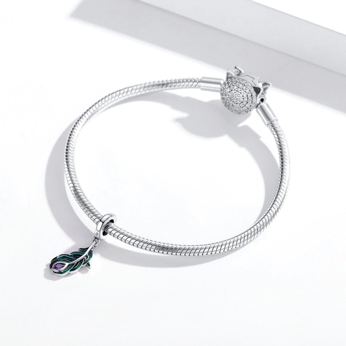 • 1 x 925 Sterling Silver Peacock Feather Pendant For Diy Bracelet Or Necklace
