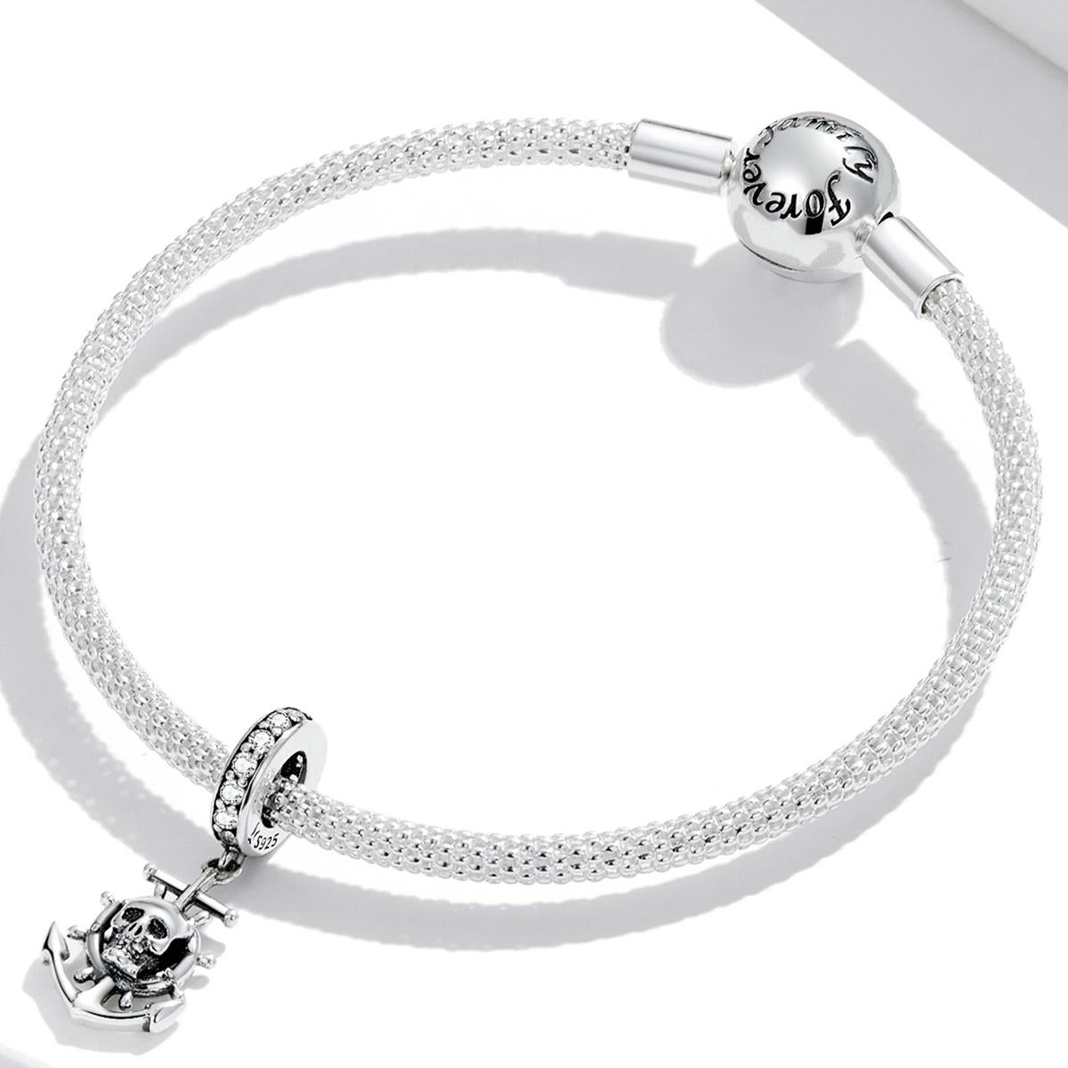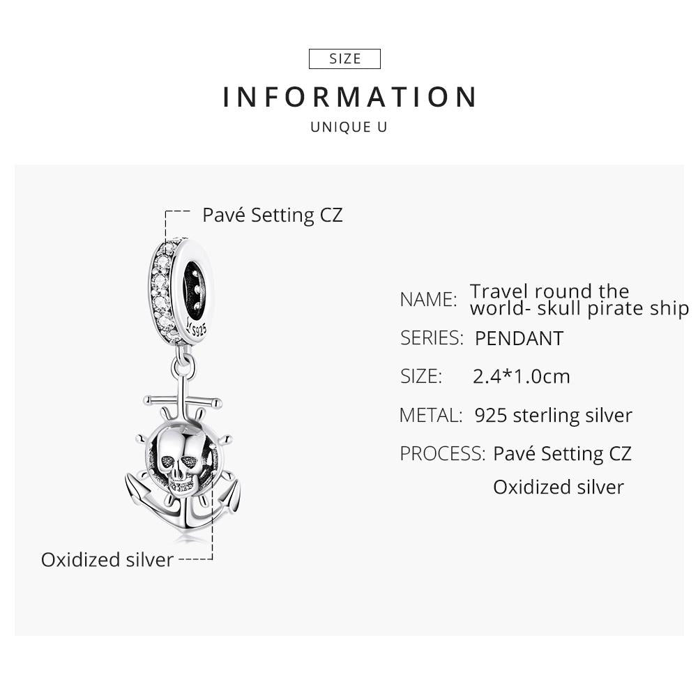 925 Sterling Silver Pirate Skull Pendant For Bracelet Or Necklace