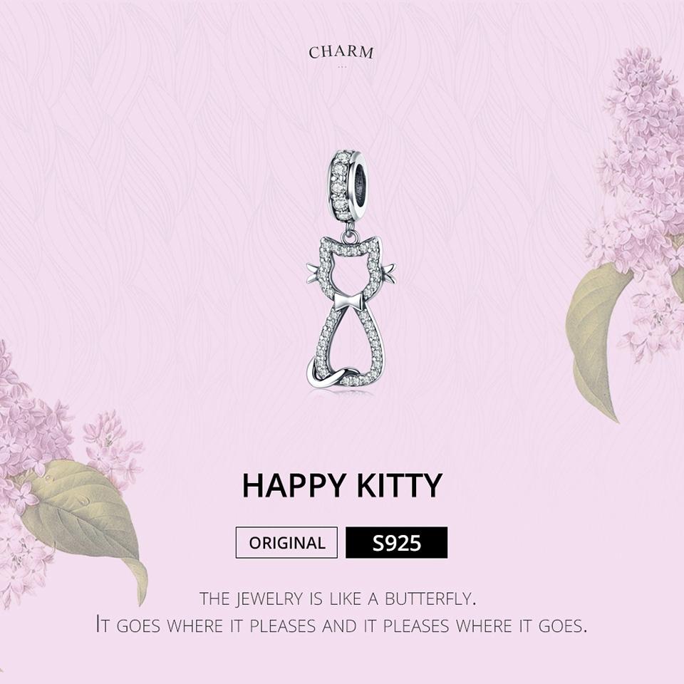 925 Sterling Silver Zircon Cat Pendant For Bracelet Diy Accessory